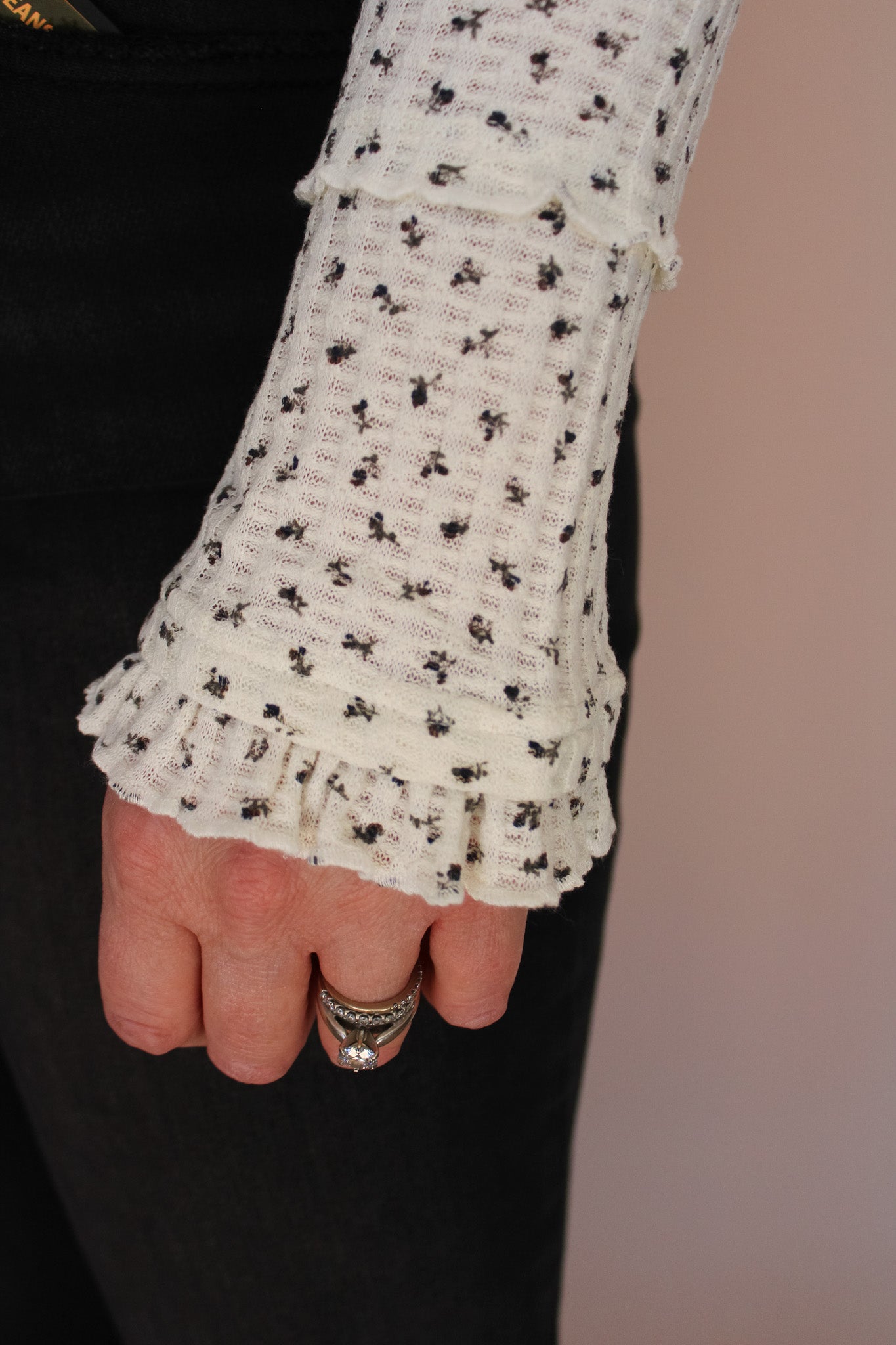 Introducing the Deidre—your new go-to for effortless elegance! This ivory long sleeve features a charming petit floral print that's delicate without being demure. The thermal mock neck keeps you cozy while the fitted silhouette flatters every frame. Perfect for layering or wearing solo, this piece transitions seamlessly from casual coffee dates to weekend adventures. Soft, stylish, and ready to become your favorite staple.