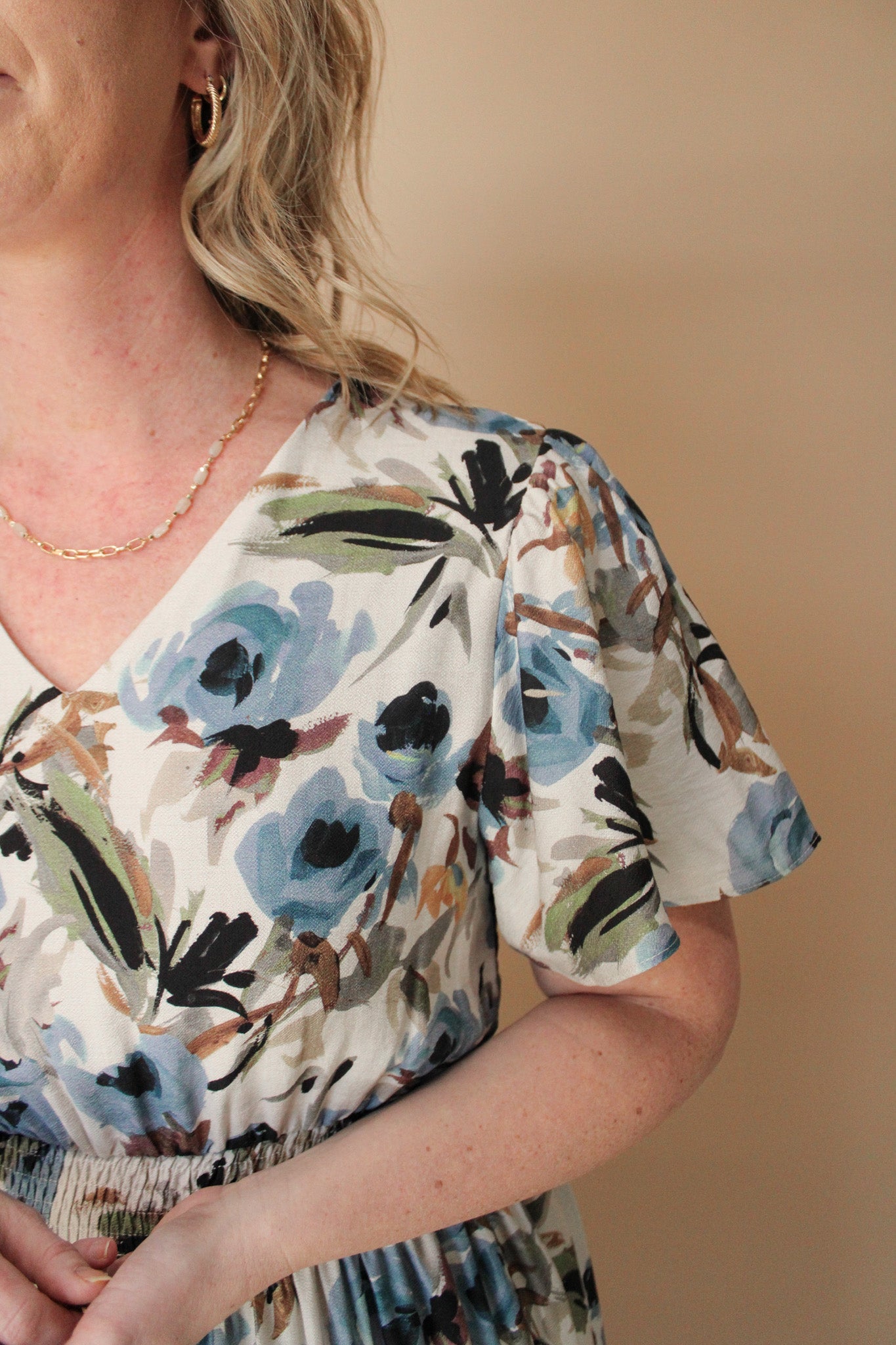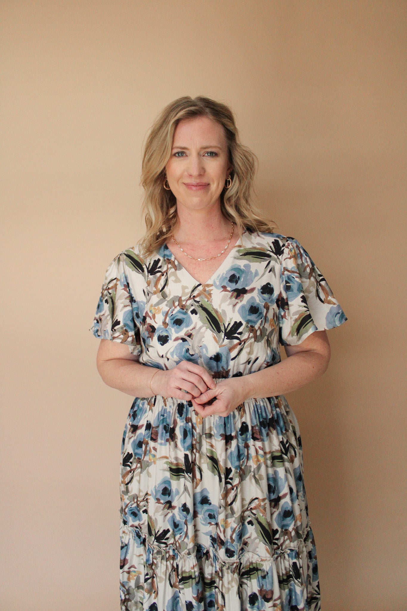 Embrace effortless elegance in this flowing full-length dress designed for warm-weather comfort. The tiered skirt creates beautiful movement and dimension, while the elastic waist ensures a flattering fit for all body types. A delicate v-neckline and flutter sleeves add romantic charm and gentle coverage. Crafted from a luxurious rayon and nylon blend, this dress drapes beautifully and feels soft against your skin.