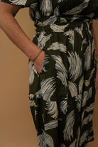 Effortless elegance meets modern sophistication in the Genesis Half Sleeve Maxi Dress. This abstract wispy design in rich olive tones creates a flowing, ethereal silhouette that moves beautifully with every step. The half-sleeve cut offers the perfect balance of coverage and breathability, ideal for layered styling or standalone wear. Crafted for those who appreciate understated luxury, this maxi dress transitions seamlessly from day to evening, making it a versatile essential for any wardrobe.