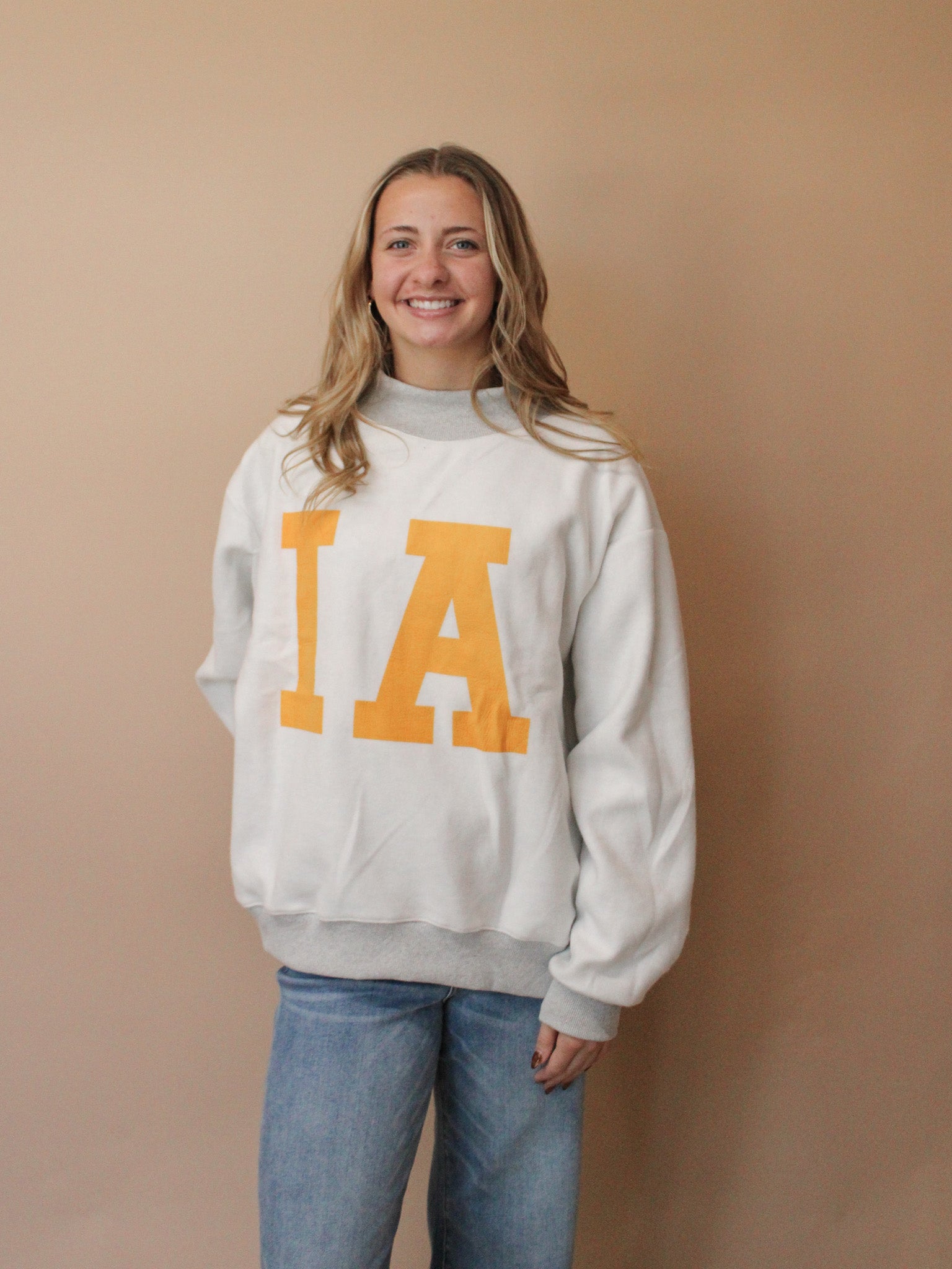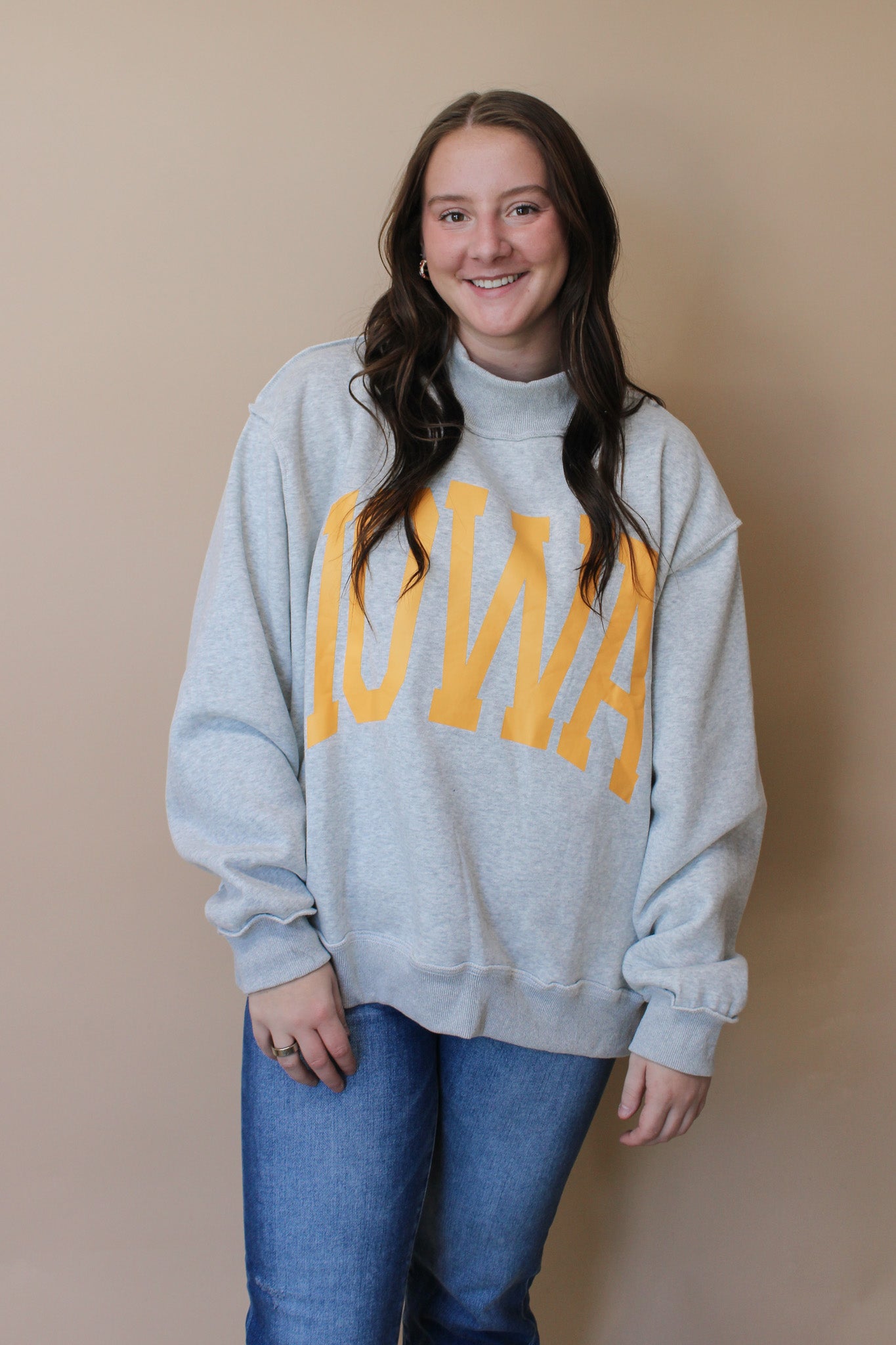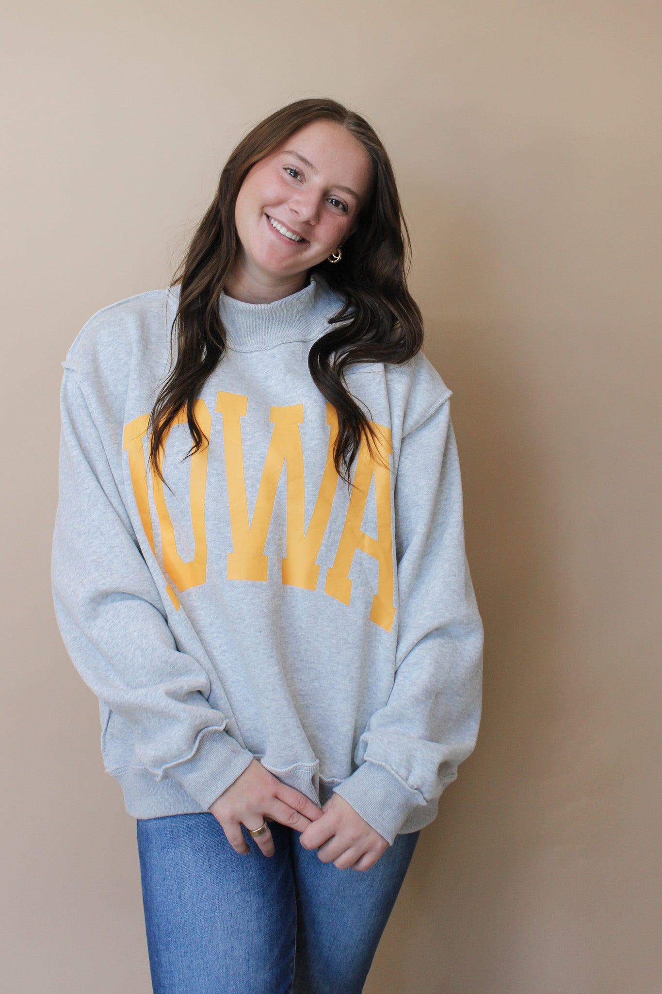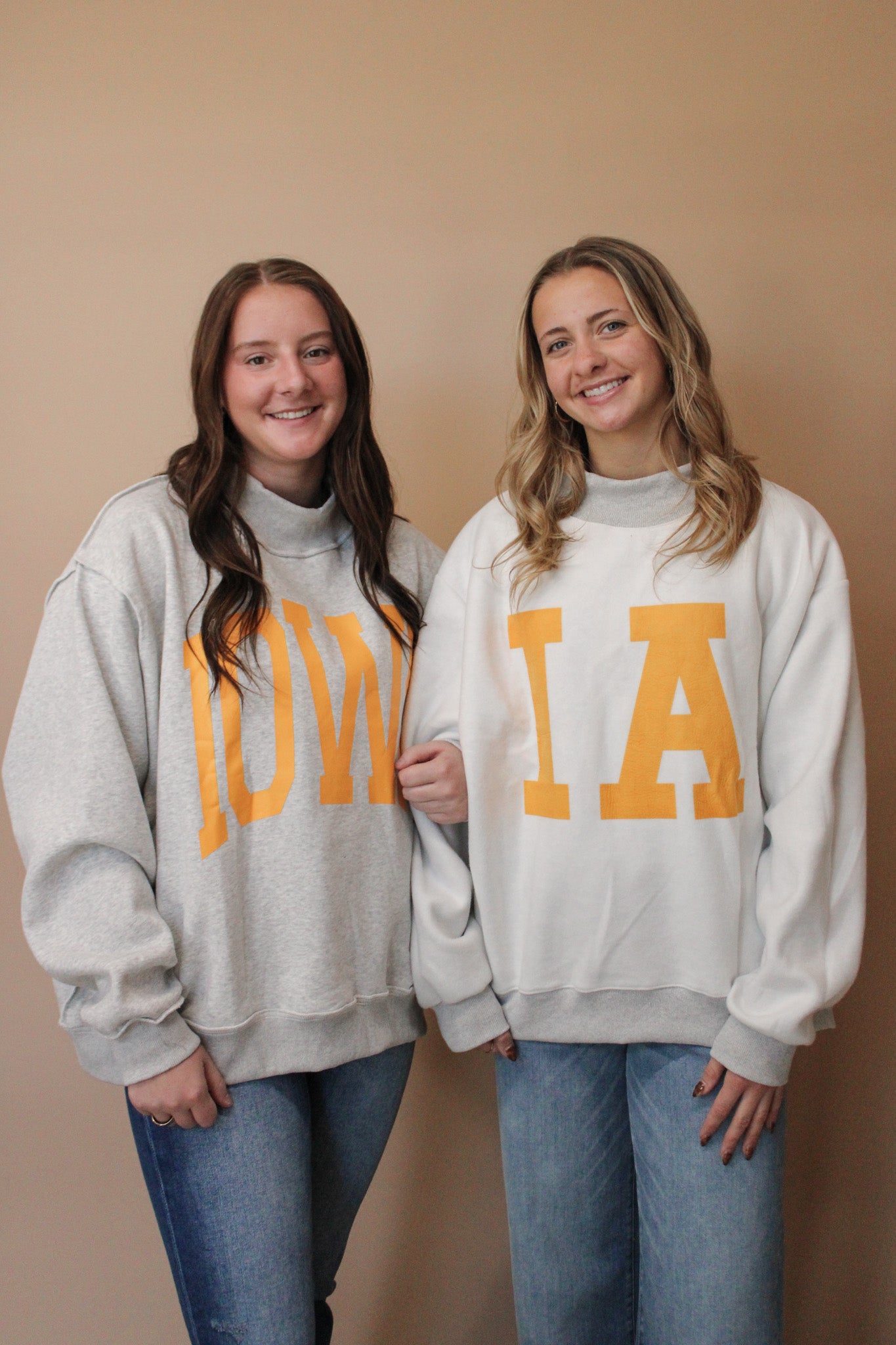 Show your Hawkeye pride with this reversible mock neck sweatshirt! Rock the bold "IOWA" print on one side, flip it for the classic "IA" abbreviation on the other—double the style, double the fun. Perfect for game days, casual outings, or whenever you want to rep your state in style. The cozy mock neck keeps you comfortable while the reversible design means you're getting two looks in one. Go Hawks!