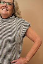 Add a splash of fun to your wardrobe with the Janelle Striped Knit Vest. Featuring a cozy mock neck and playful stripes, this vest is perfect for layering or wearing solo on cool days. Its soft knit fabric keeps you comfy while the bold pattern adds a stylish pop to any outfit. Easy to mix, match, and love!