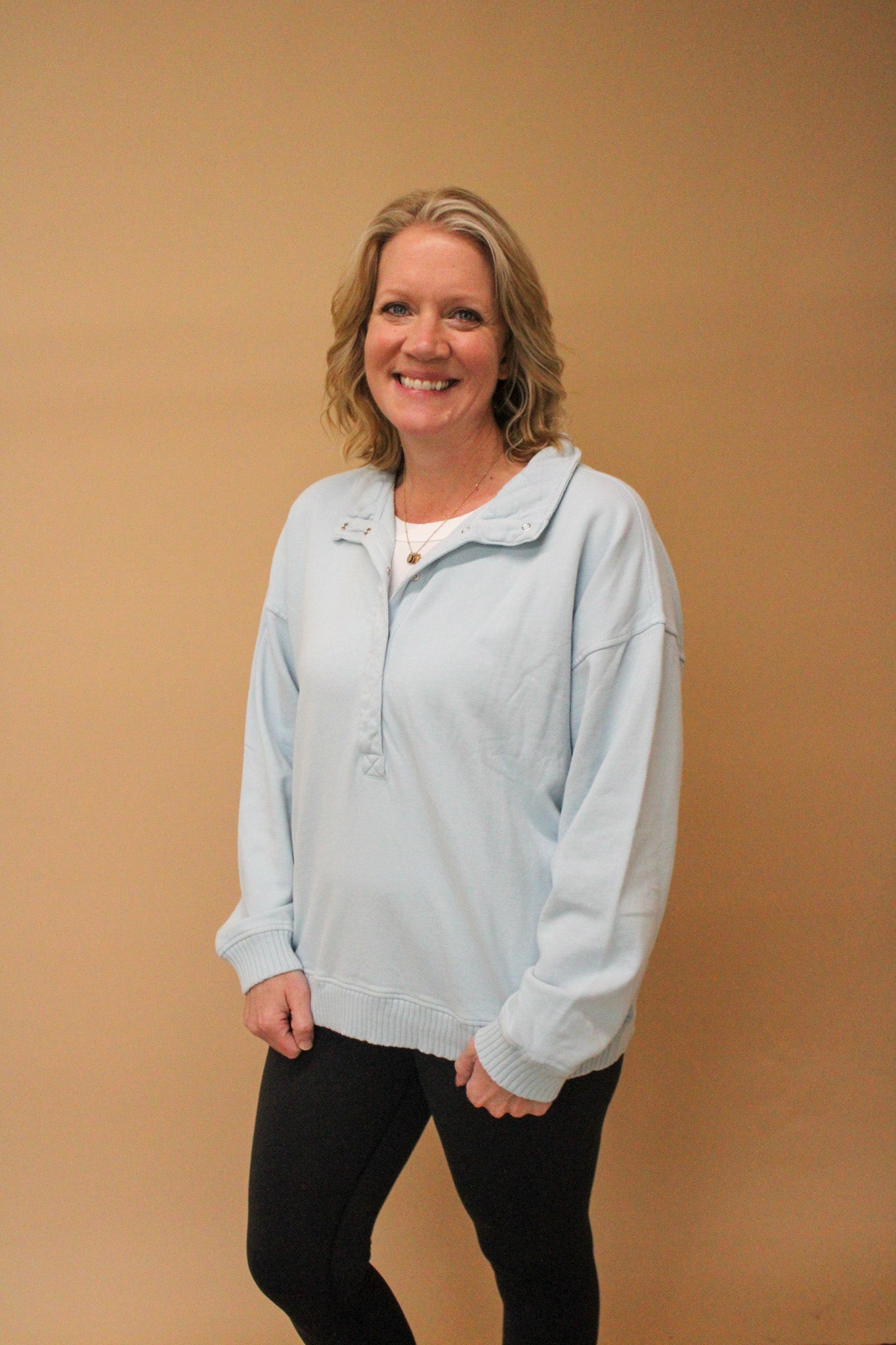 Embrace effortless luxury with the JULIE Mineral Dyed Fleece Pullover. This oversized sweatshirt combines soft, lived-in style with everyday comfort. Crafted from 100% cotton with a cozy fleeced interior, it features a relaxed semi-button front and vintage-inspired garment dye finish. Perfect for layering or wearing solo, this piece delivers that coveted boutique aesthetic with an undone, comfortable fit. The model wears a size small at 5'9" with a 30.5" bust.