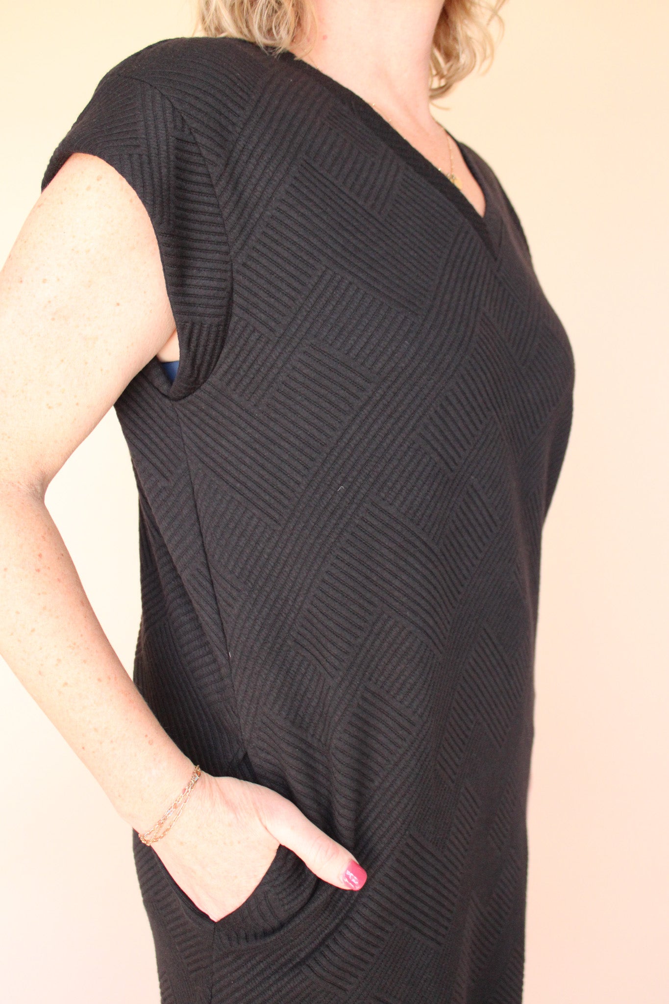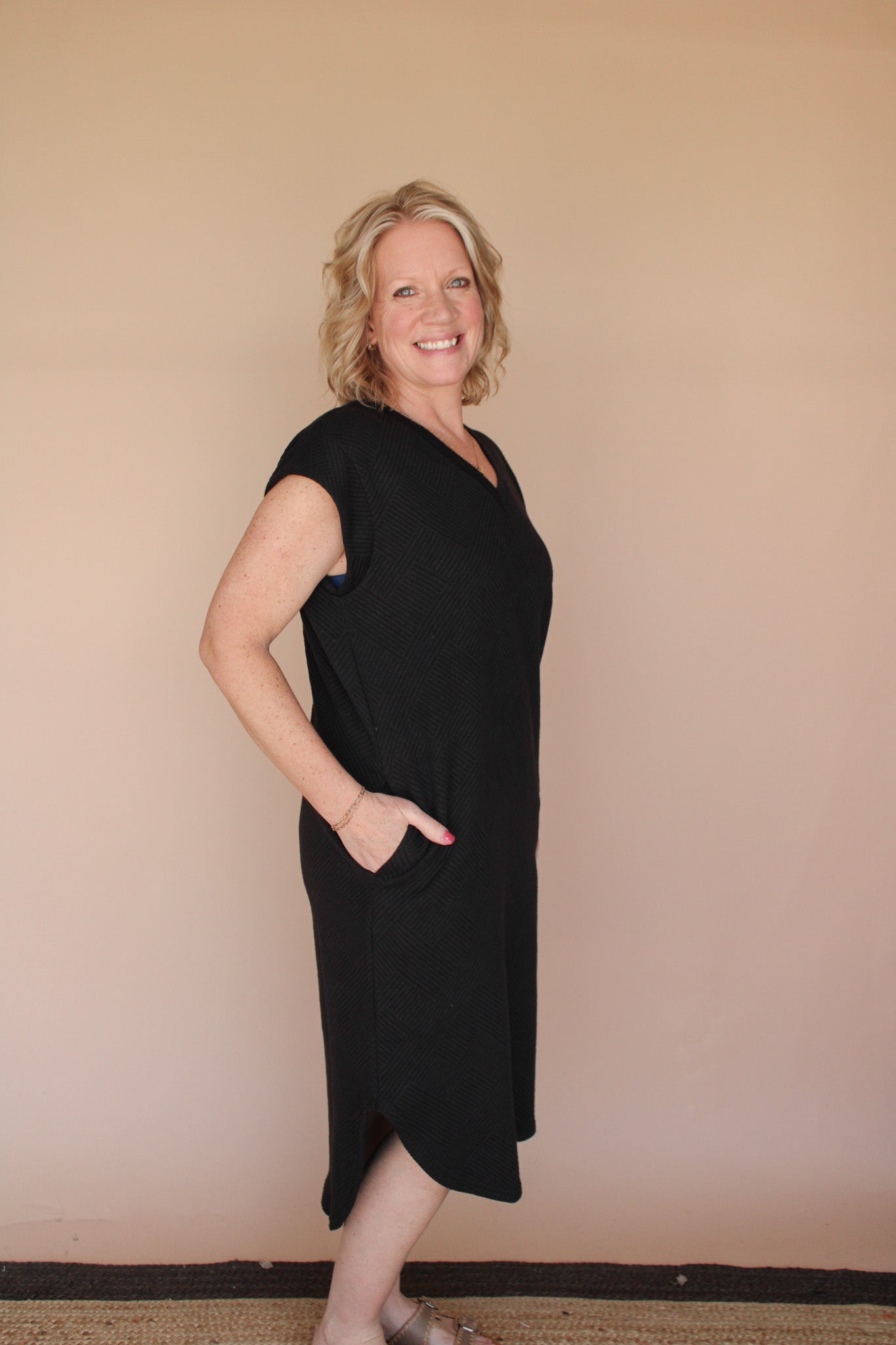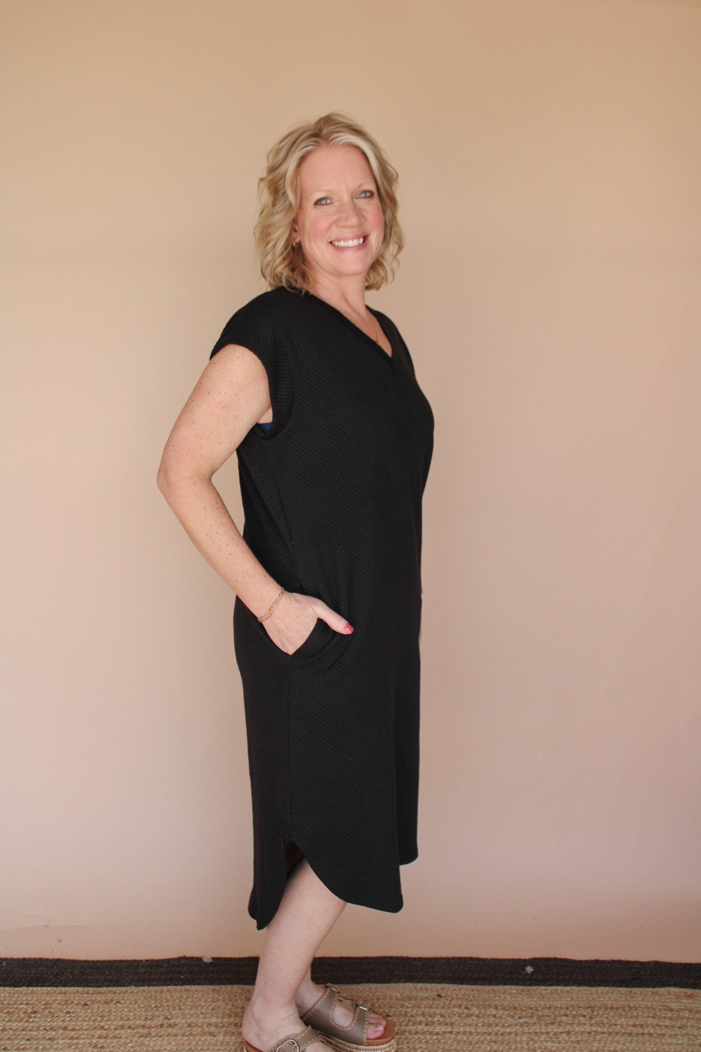 LEILANI TEXTURED V-NECK CURVED HEM DRESS