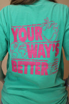 Inspired by Forrest Frank’s hit song, this uplifting tee is a reminder to trust that His way is always better. Featuring clean, modern typography on a vibrant Island Green neon tee, it captures a laid-back, coastal vibe with a powerful message.