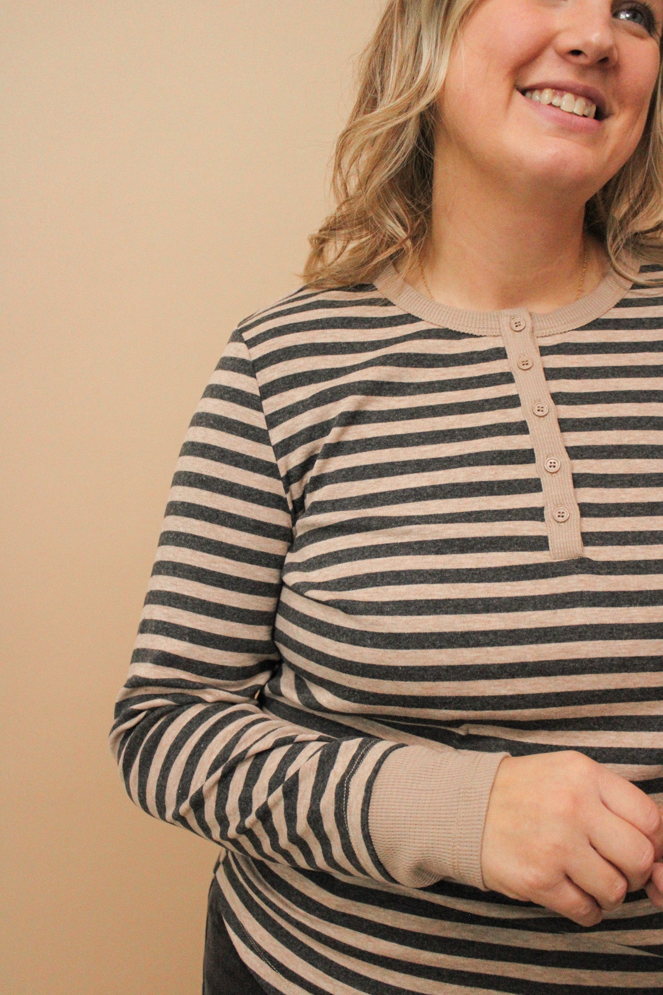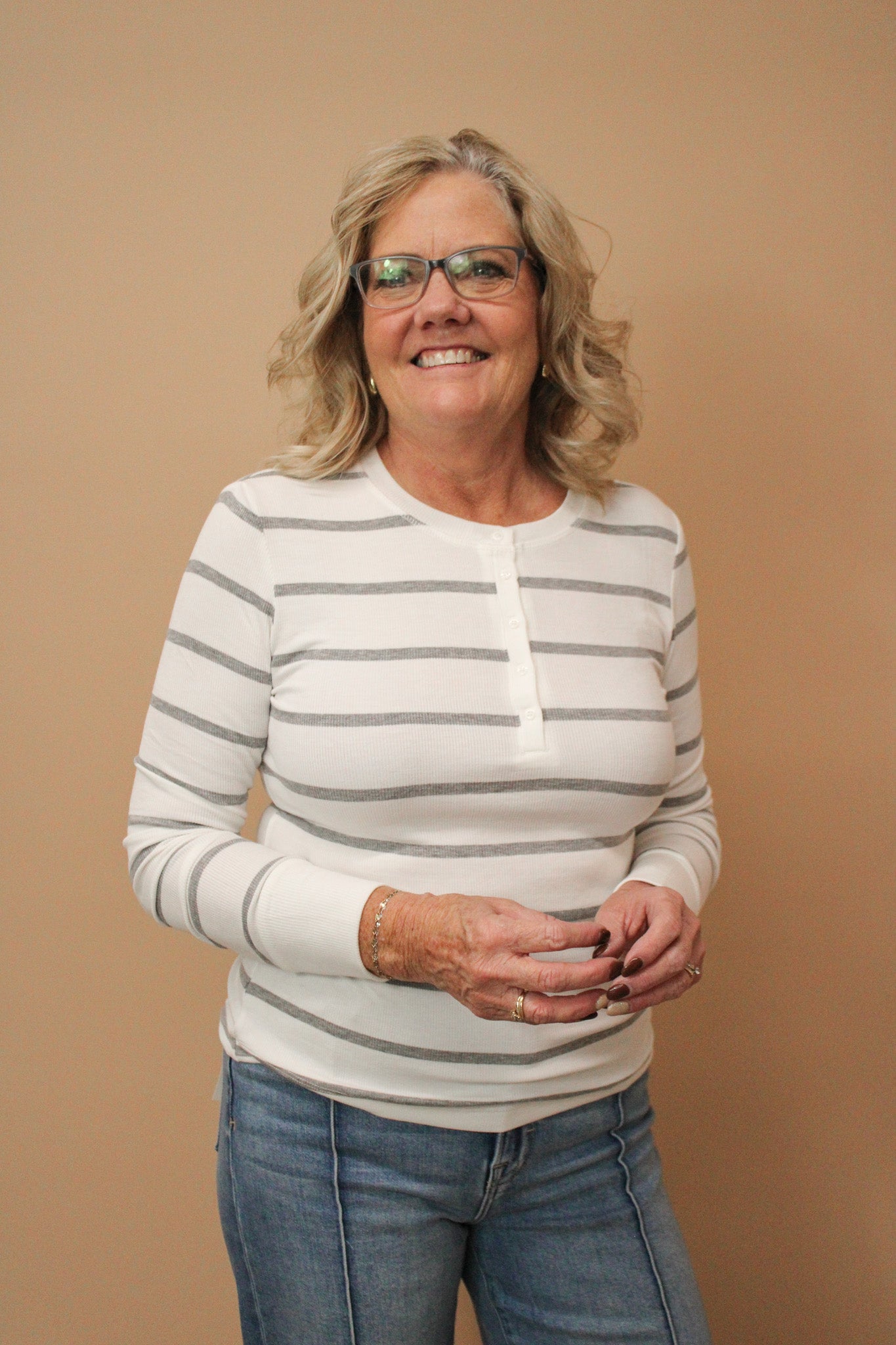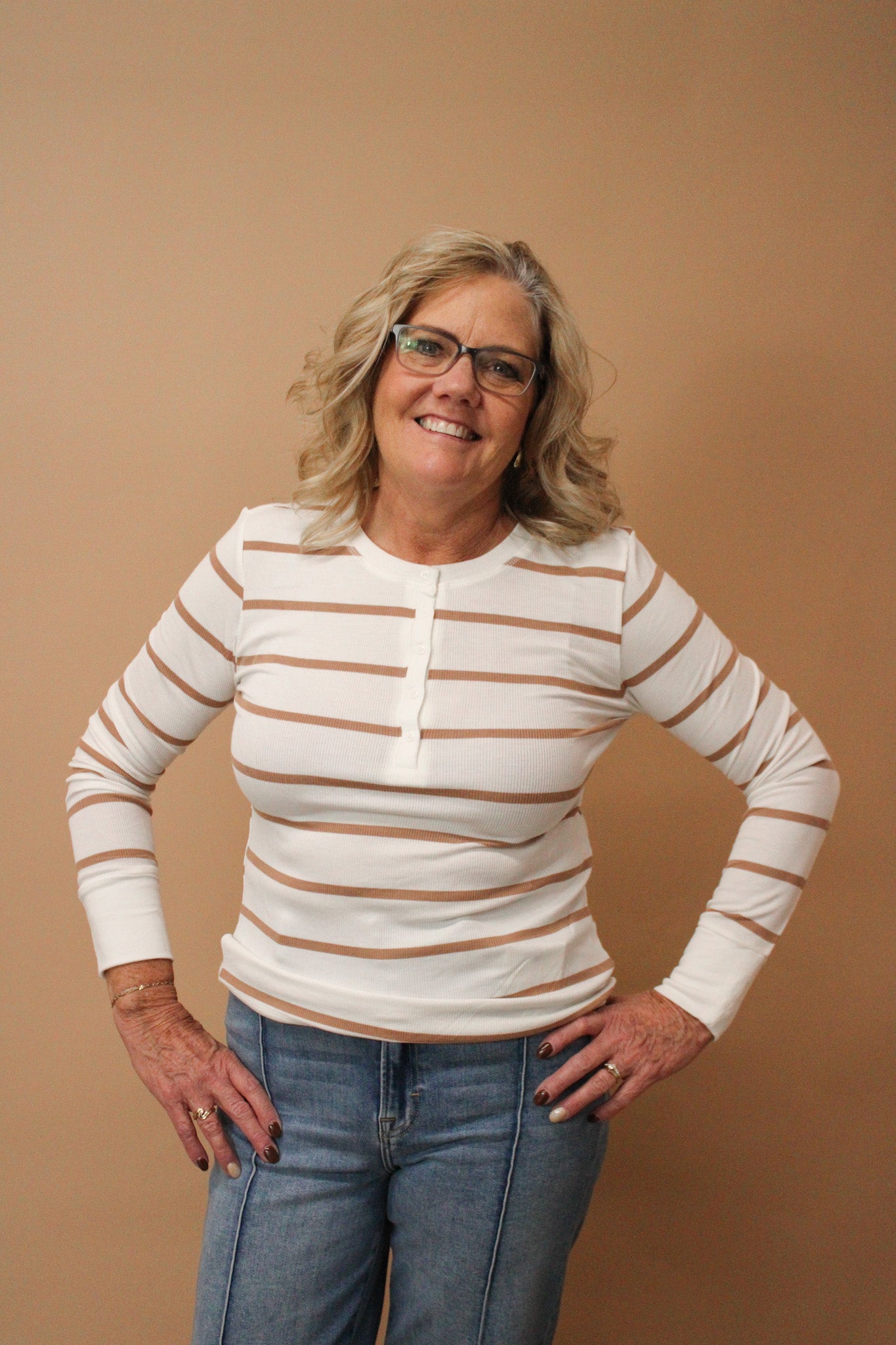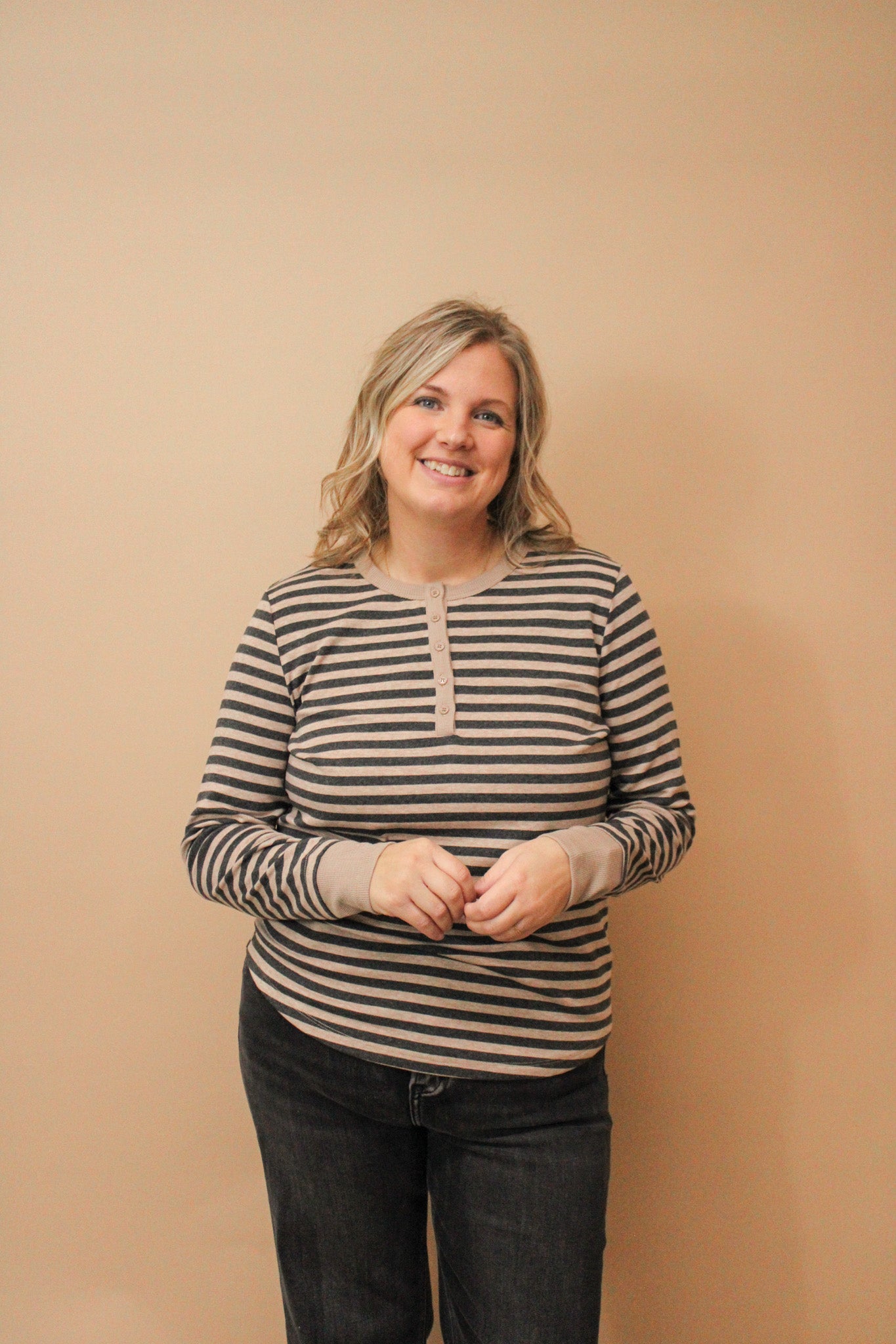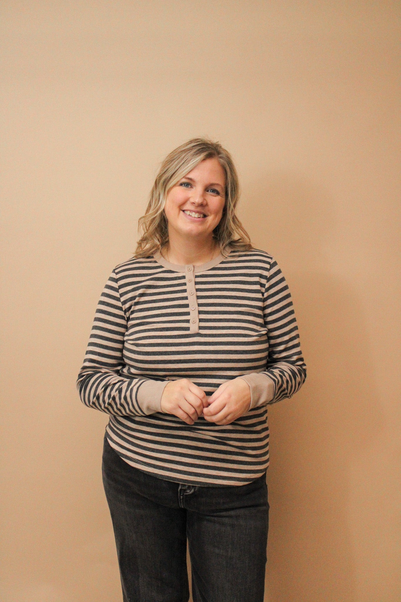 TRIXIE RIBBED STRIPED LONG SLEEVE HENLEY