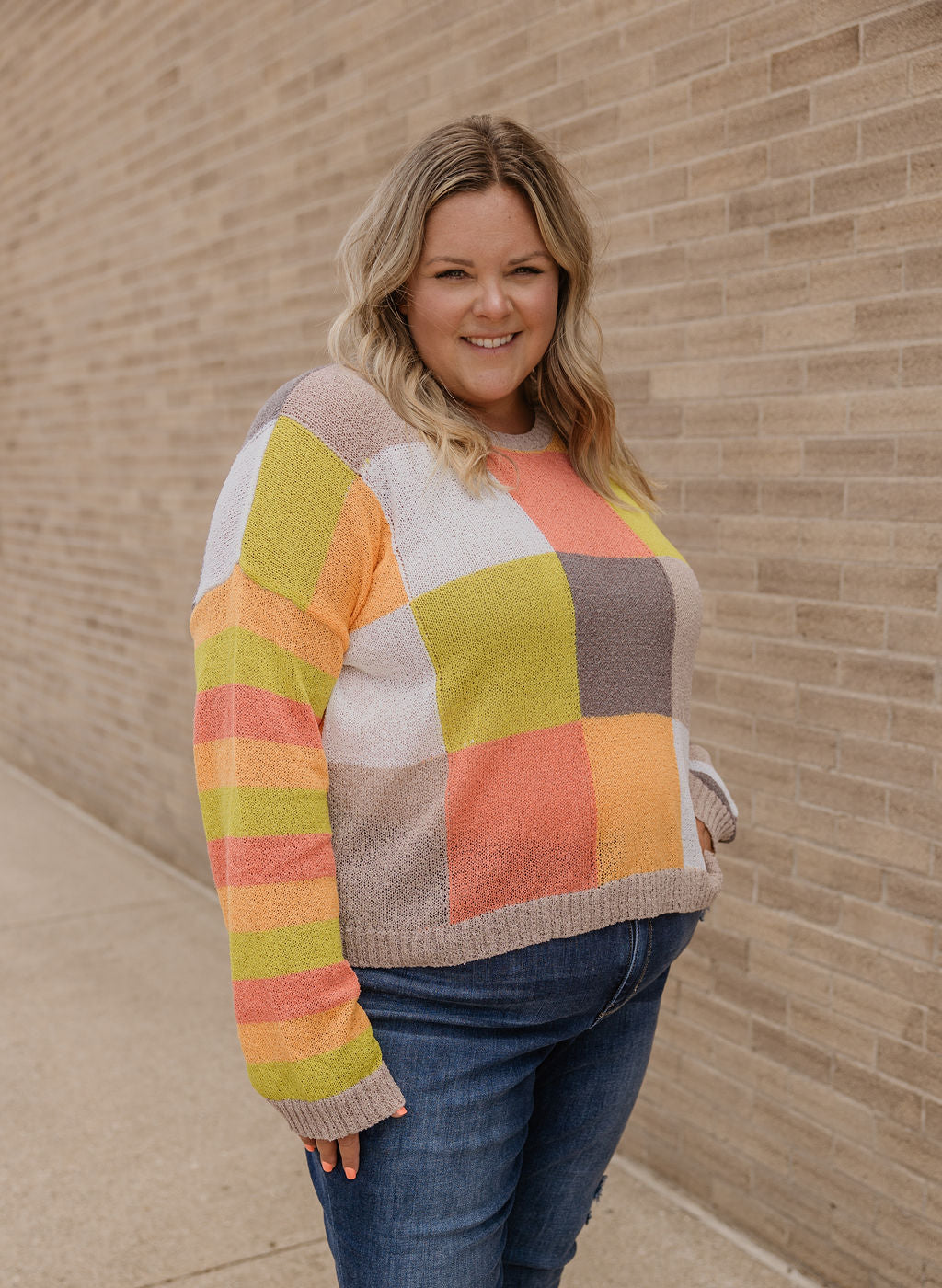 MAGGIE CURVY LIGHTWEIGHT CHECKERBOARD SWEATER