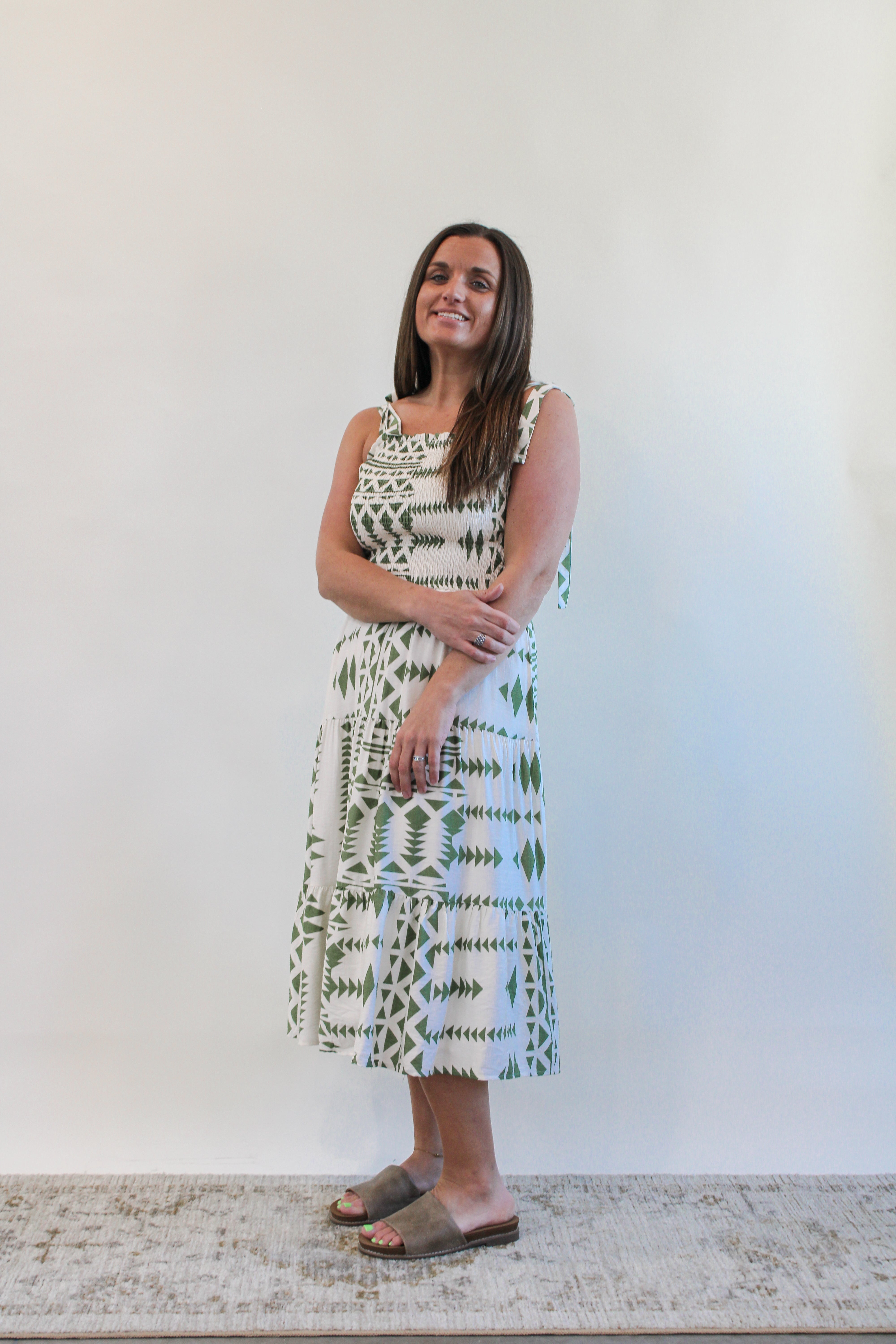 GRACIA ABSTRACT HALTER TIERED MIDI DRESS
