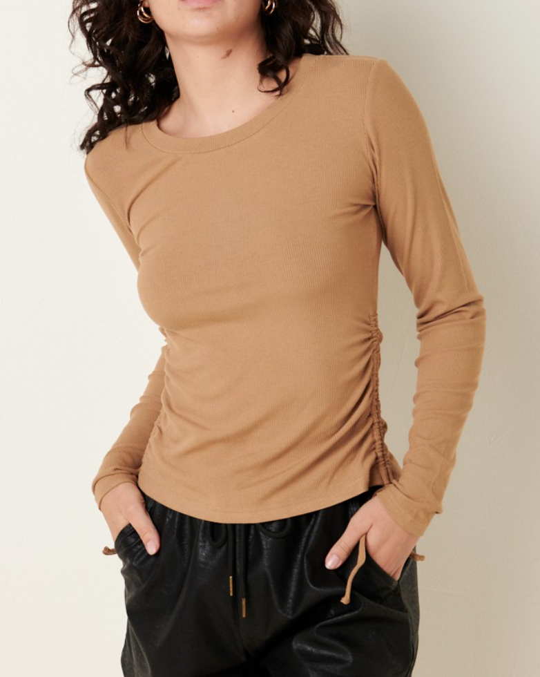 SHAELA RIBBED CINCH SIDE LONG SLEEVE TOP