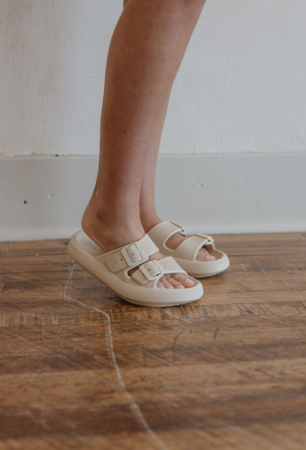 CORRIE BONE COLORED 2 STRAP RUBBER SANDAL WITH PLATFORM