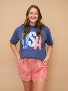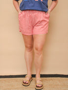 Playful gingham boxer shorts with a comfy elastic waistband and convenient side pockets! These 100% cotton cuties feature stylish side slits for extra movement. The small size offers a 3 1/4" inseam.