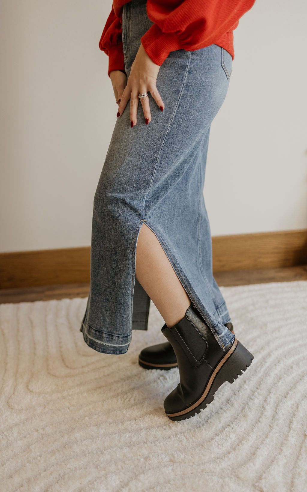 Medium washed denim skirt with side slits