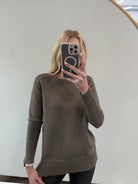 Sweater weather just got better with our Aspen Knit Olive Sweater. Made from a luxurious blend of viscose, poly, and nylon, this beautiful sweater features a cozy crewneck knit. Stay stylish and warm all season long.