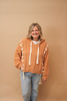 Get ready to steal the show in our DARIA top! Designed with a trendy V-neck hoodie, balloon sleeves, and tie detail, this chenille sweater is as comfy as it is chic. The relaxed fit and solid pattern make it a versatile addition to your wardrobe.