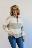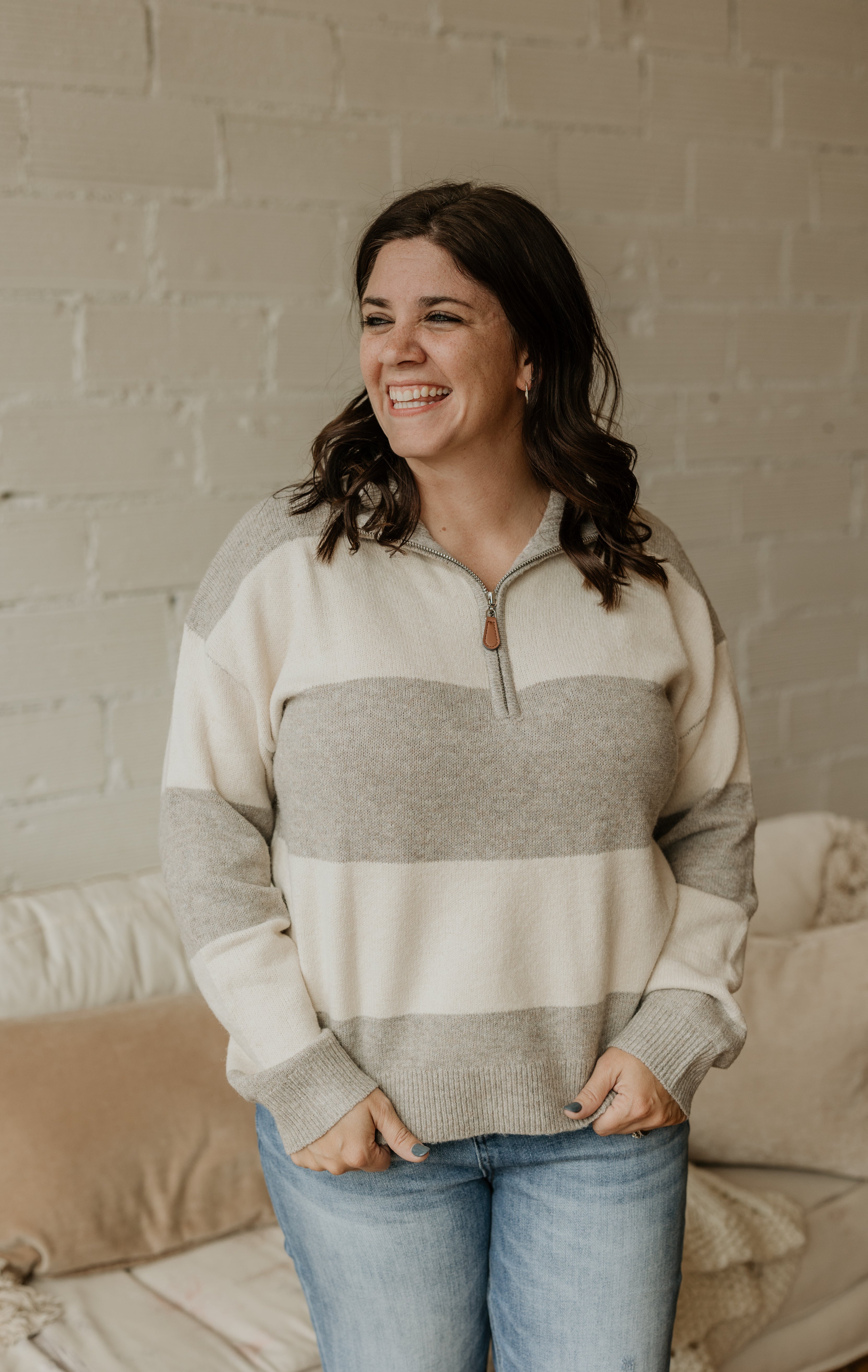 Unleash your style with this half zip featuring a bold stripe design. Embrace the playfulness of the double meaning and show off your unique fashion sense. (But seriously, it's also super comfortable and perfect for any occasion.)