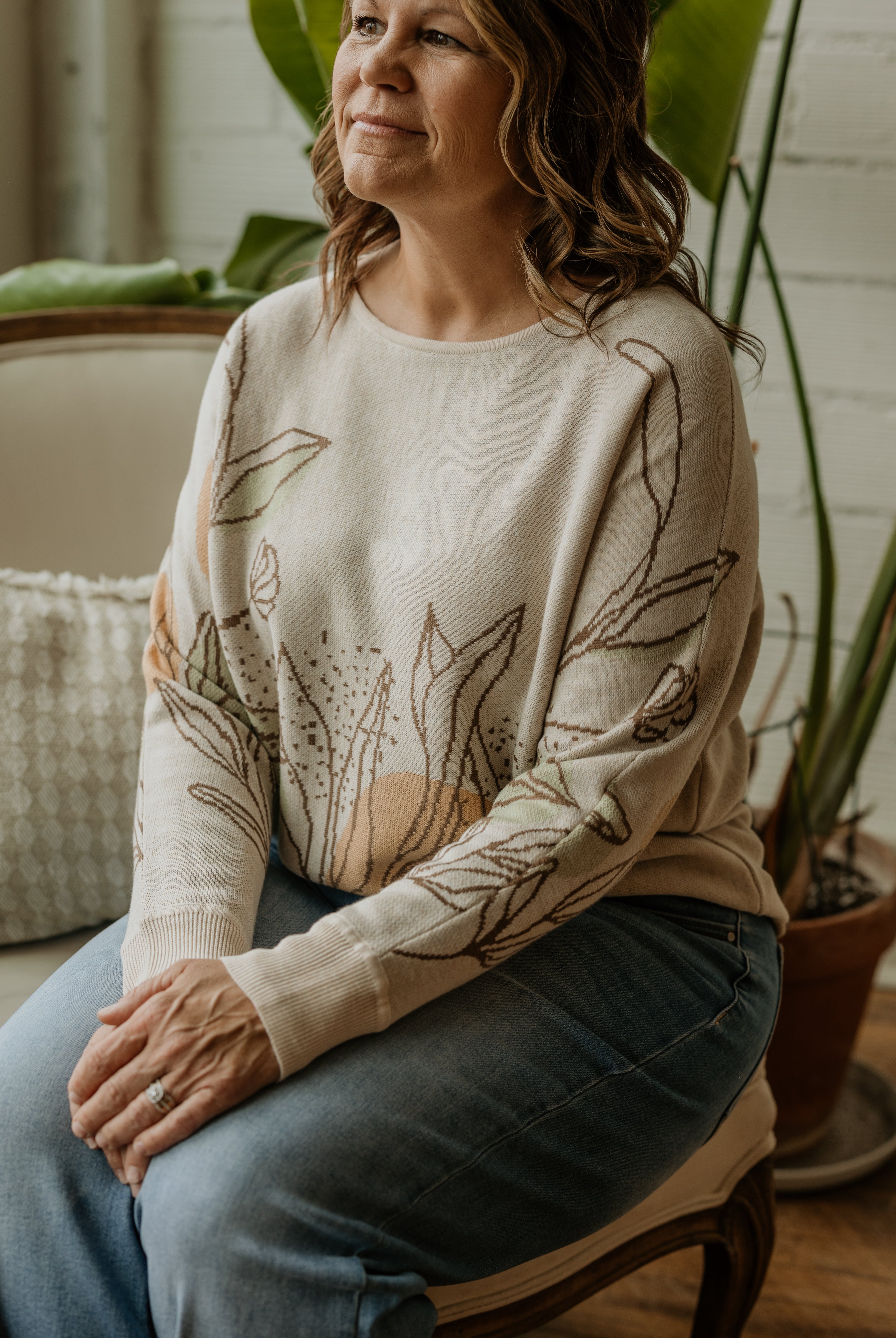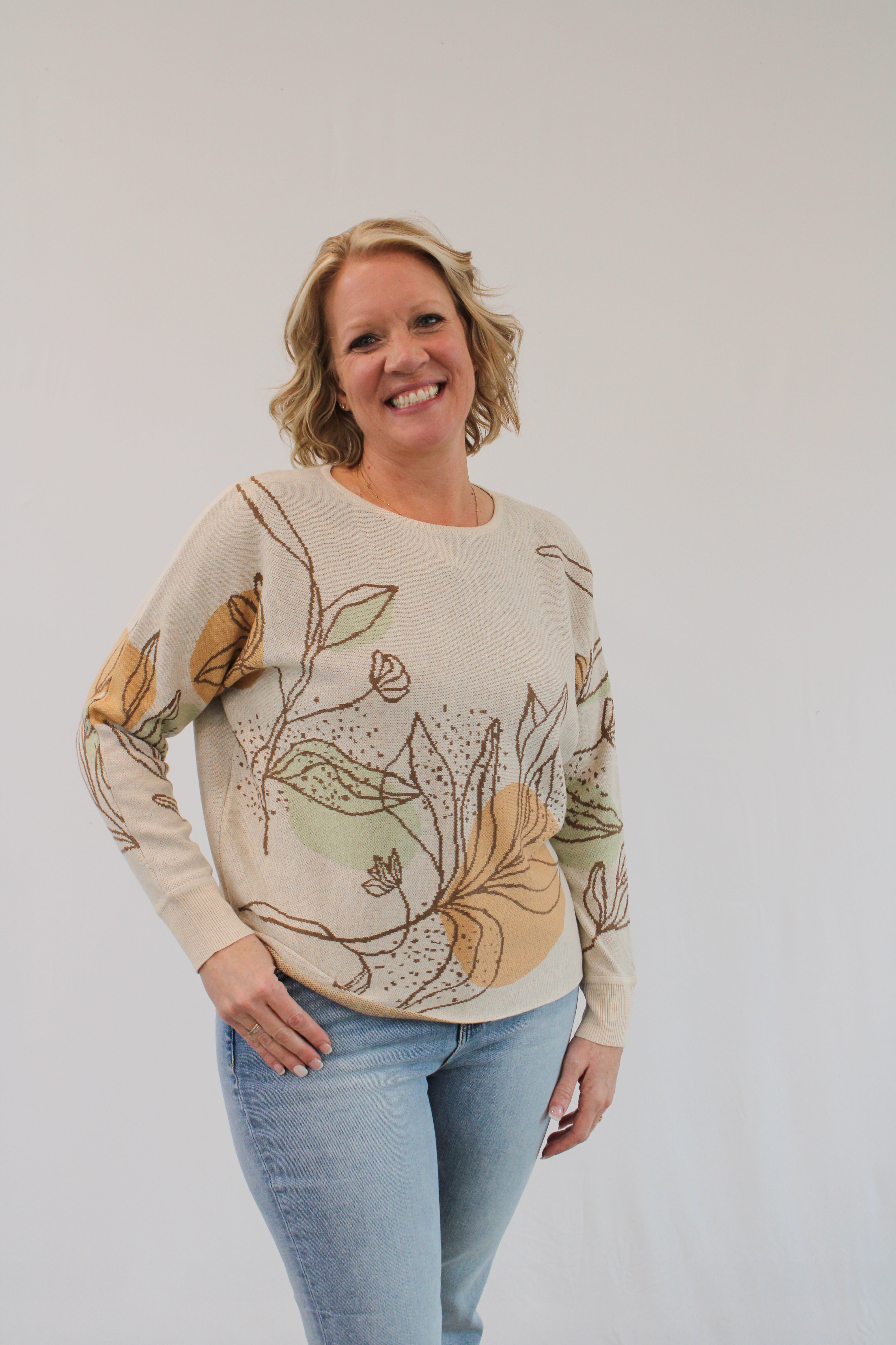 Enjoy the playful style of our Kierstin Floral Sweater! The floral print jacquard adds a touch of whimsy, while the boat neck and dolman sleeves create a relaxed, comfortable fit. Perfect for adding a pop of color to your wardrobe!