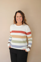 Introducing our Kindra Striped Lightweight Sweater - the perfect blend of texture and bold color! Stay cozy and stylish with its crewneck design and long sleeves. A must-have for any wardrobe!