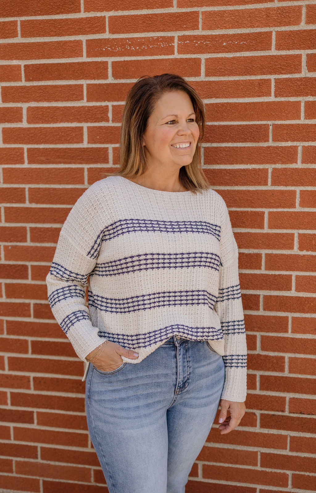 Get ready to channel your inner fashionista with the LEWINSKI Oversized Knit Sweater! This cozy and stylish sweater will keep you warm with its long sleeves and oversized design. Its playful stripe pattern adds a touch of fun to any outfit. Perfect for those who like to make a statement with their fashion!