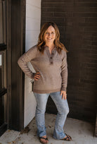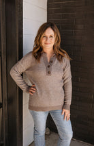 Stay cozy and stylish with the Mabel Button Down Sweater. This grey speckled sweater features a unique 1/2 button down design, perfect for layering over any outfit. With its playful speckled pattern, you'll stand out from ordinary sweaters.