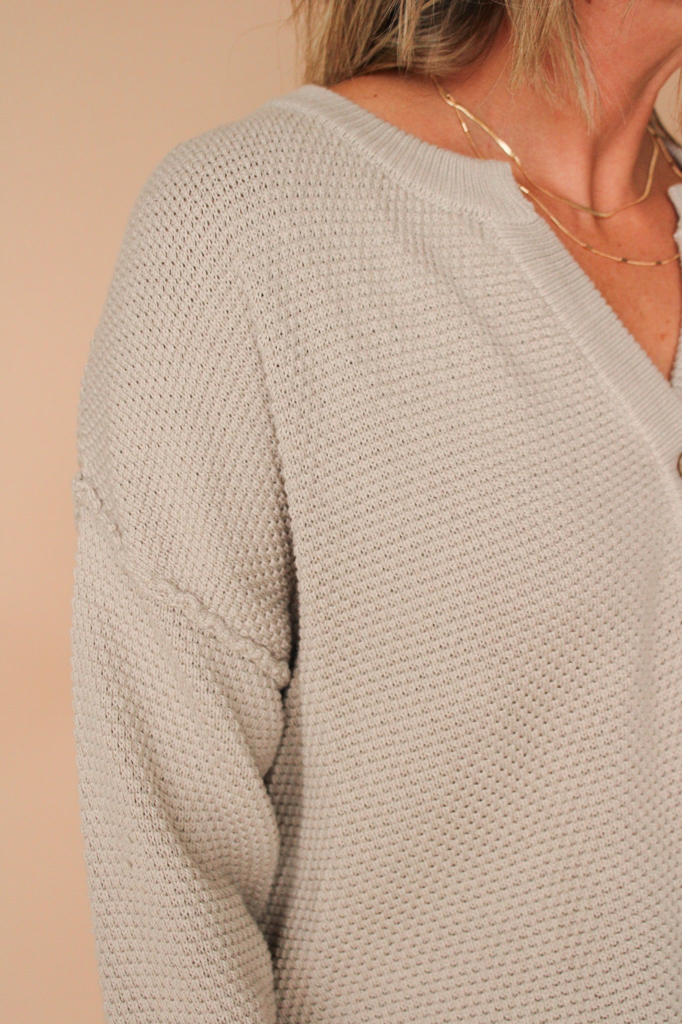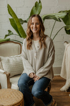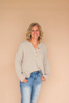 Step out in style with the Mason Waffle Knit Top! This unique sweater top features a cozy waffle knit pattern and is made from 100% cotton for ultimate comfort. The stone color adds a touch of sophistication, while the side slits provide a fun and functional detail. Upgrade your wardrobe with this must-have top.