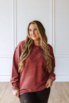 Luxury Corded Crew Sweatshirt is made of corded fabric for a soft, yet structured feel. Its vintage wash delivers rich, warm colors. Oversized fit features a ribbed crew neckline, cuffs, and hemline. Custom dyed and snow washed for softness and vintage look