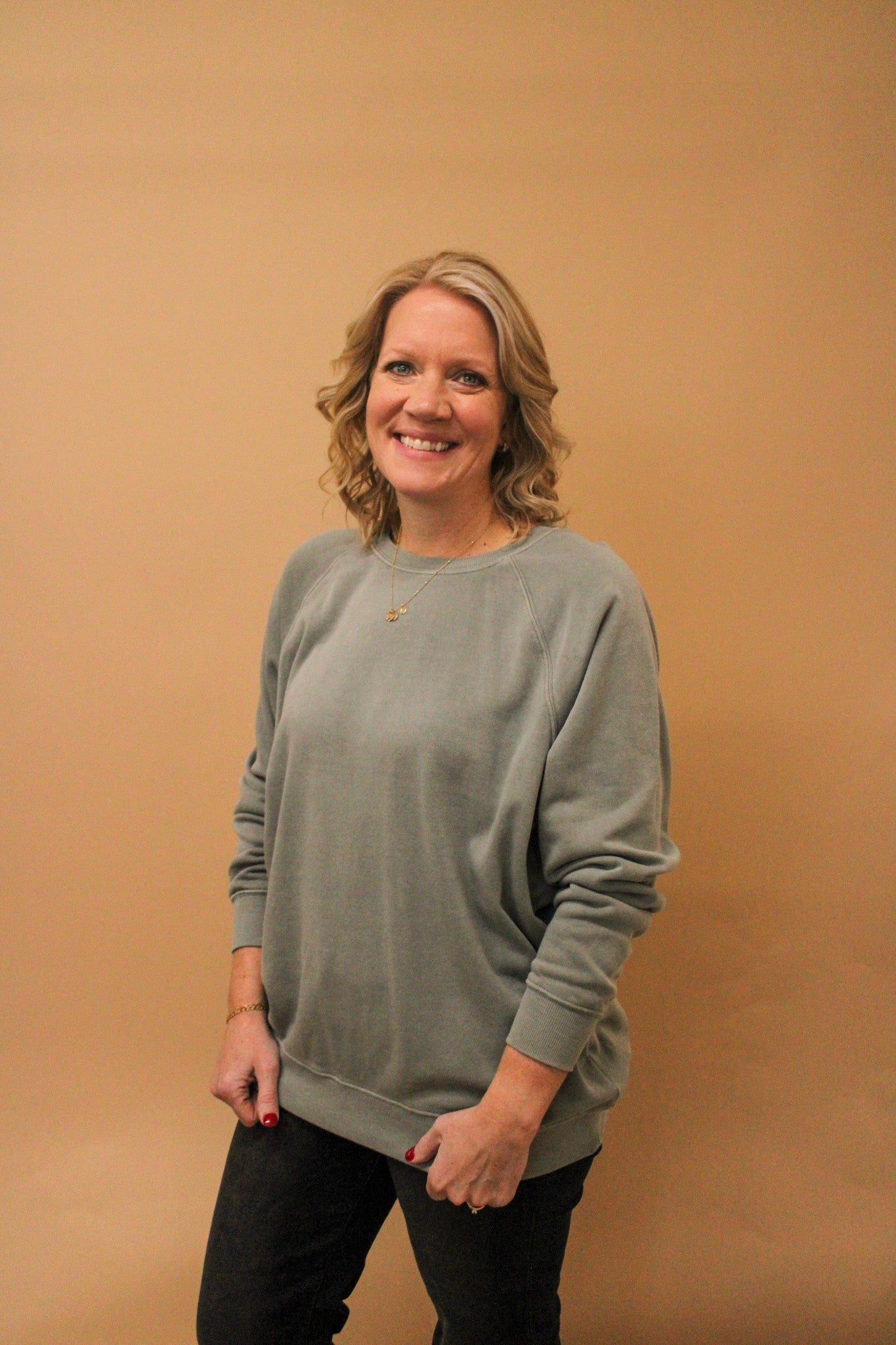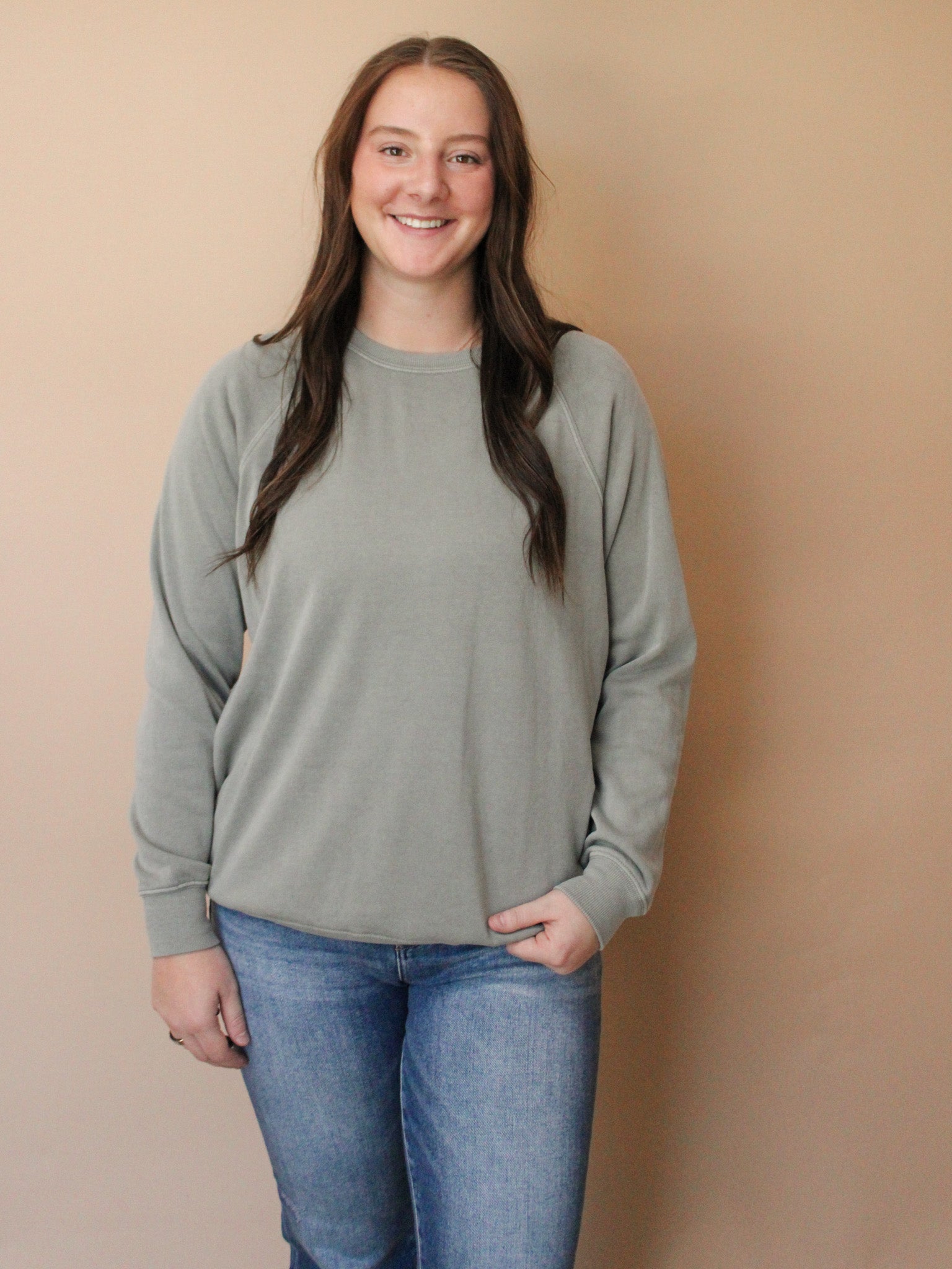 The perfect excuse to kick back in style. This crewneck top features a relaxed crew neckline and comfortable raglan sleeves that move with you. Ribbed hems and cuffs keep everything in place while you're out having fun. Size small measures 28" in length with a 21" chest and 29.5" sleeve length—ideal for an easy, laid-back fit that's ready for whatever comes next.
