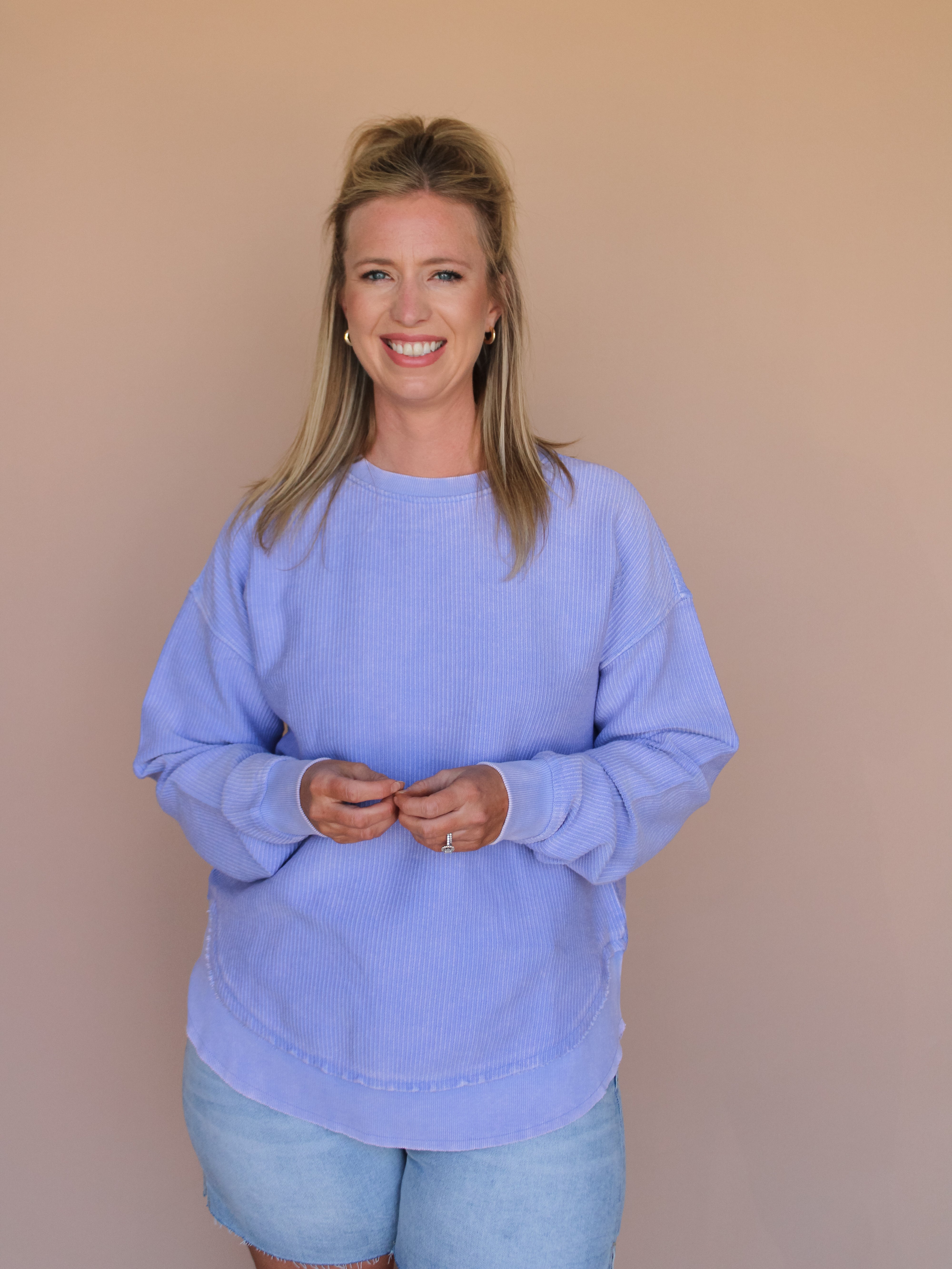 LEELA RIBBED ROUND HEM SWEATSHIRT