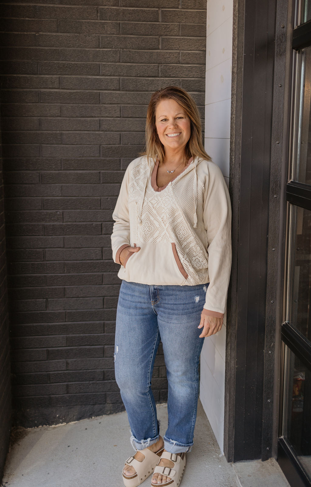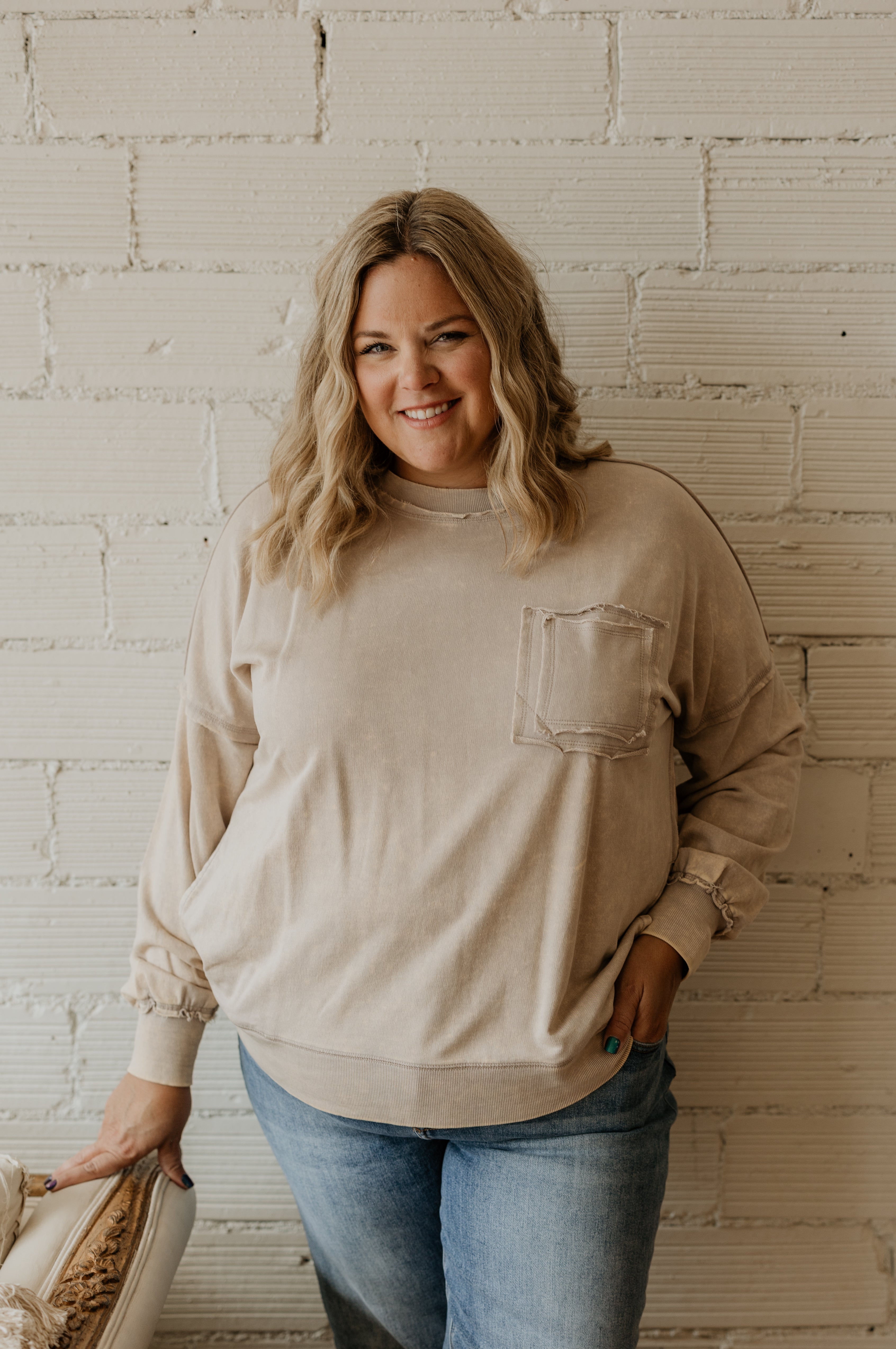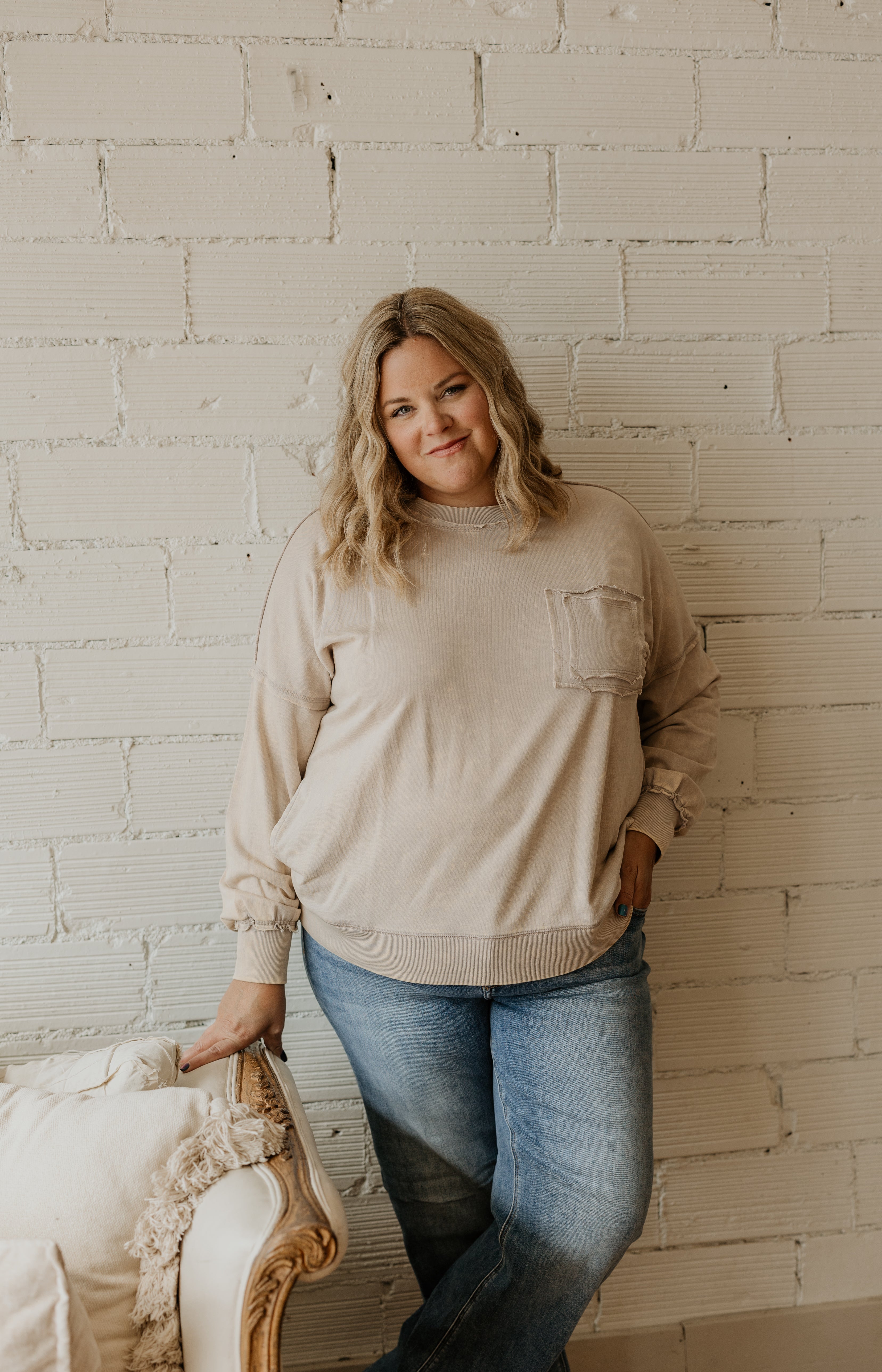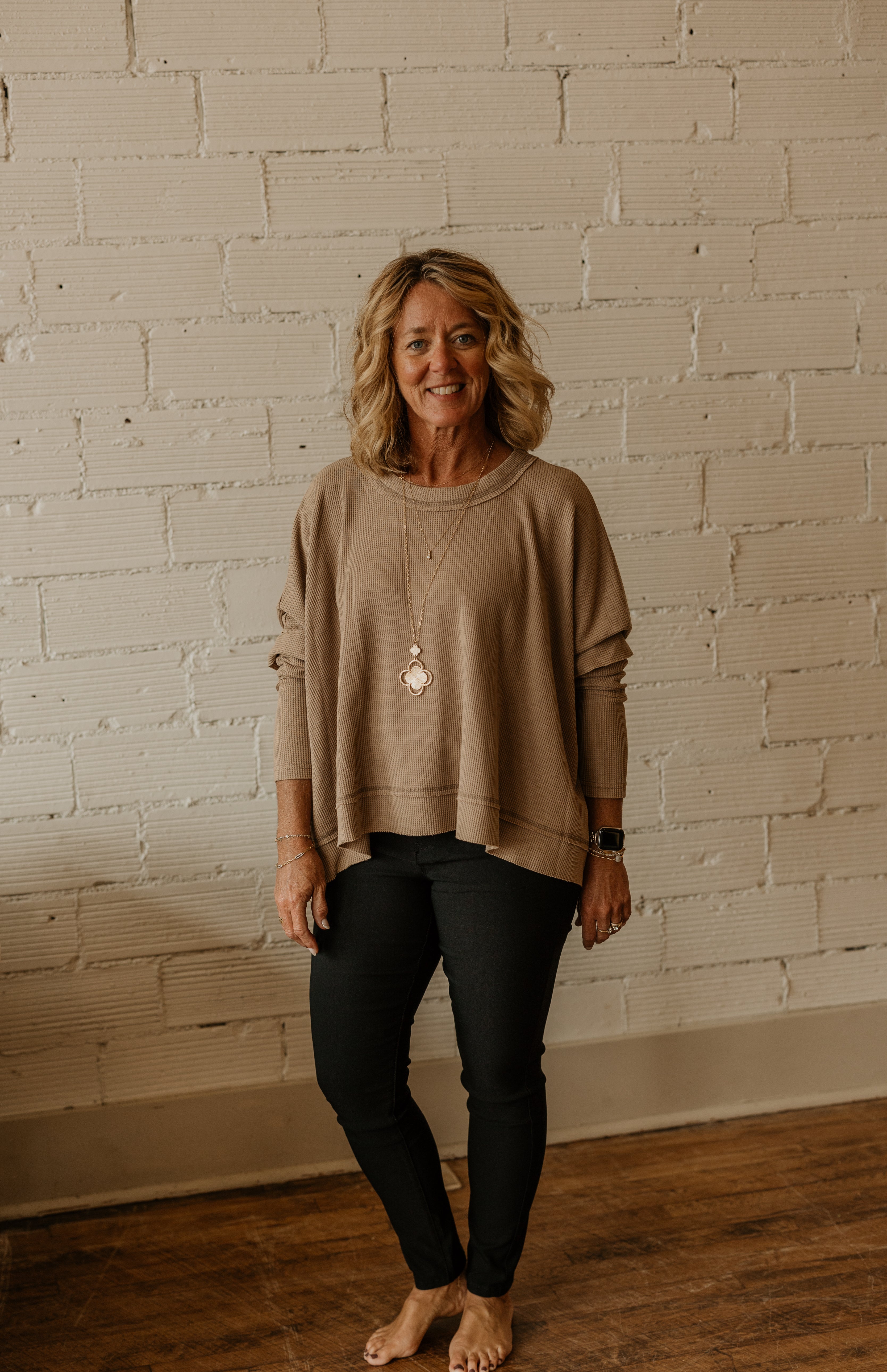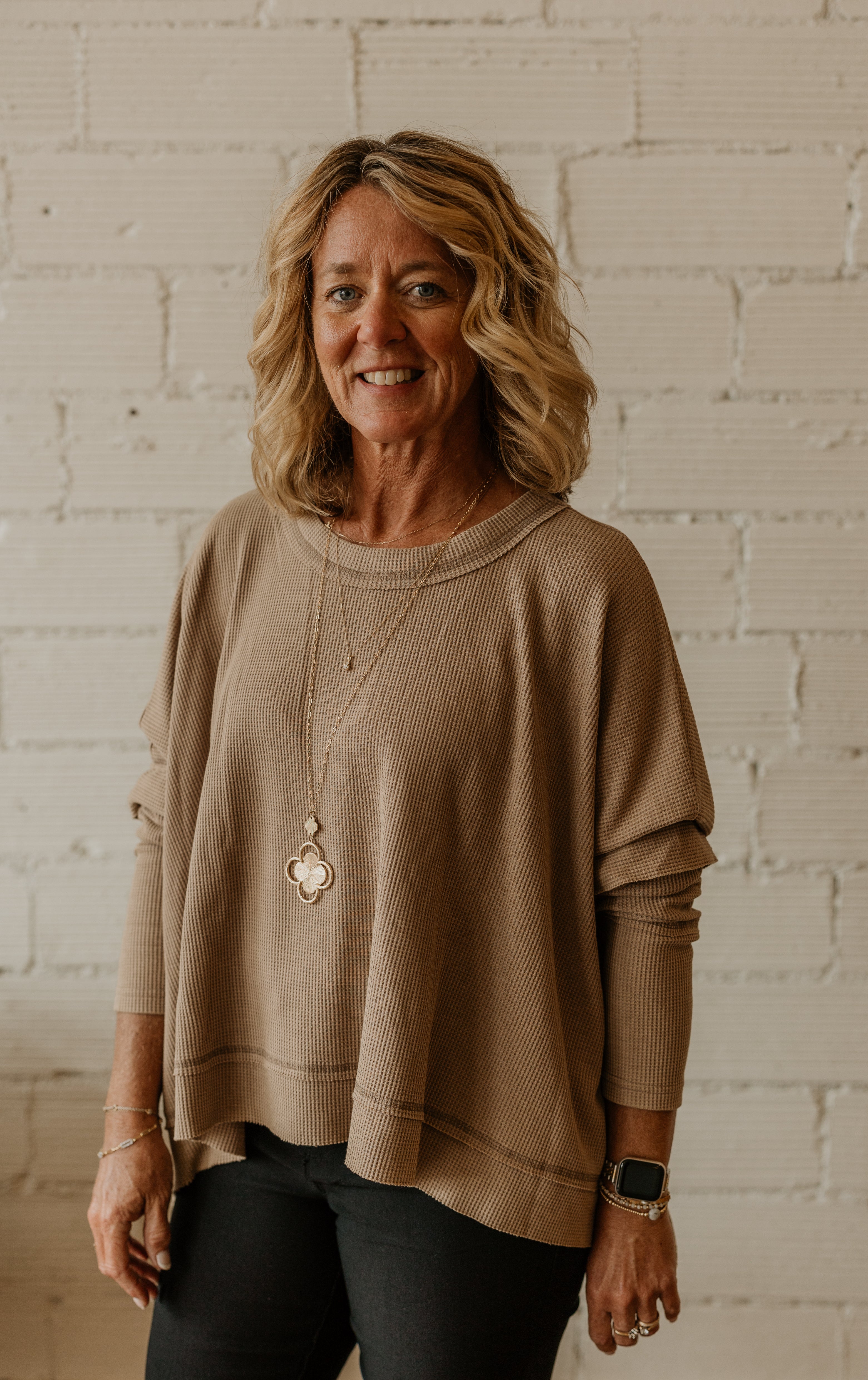 TRISTA WAFFLE CREWNECK TOP