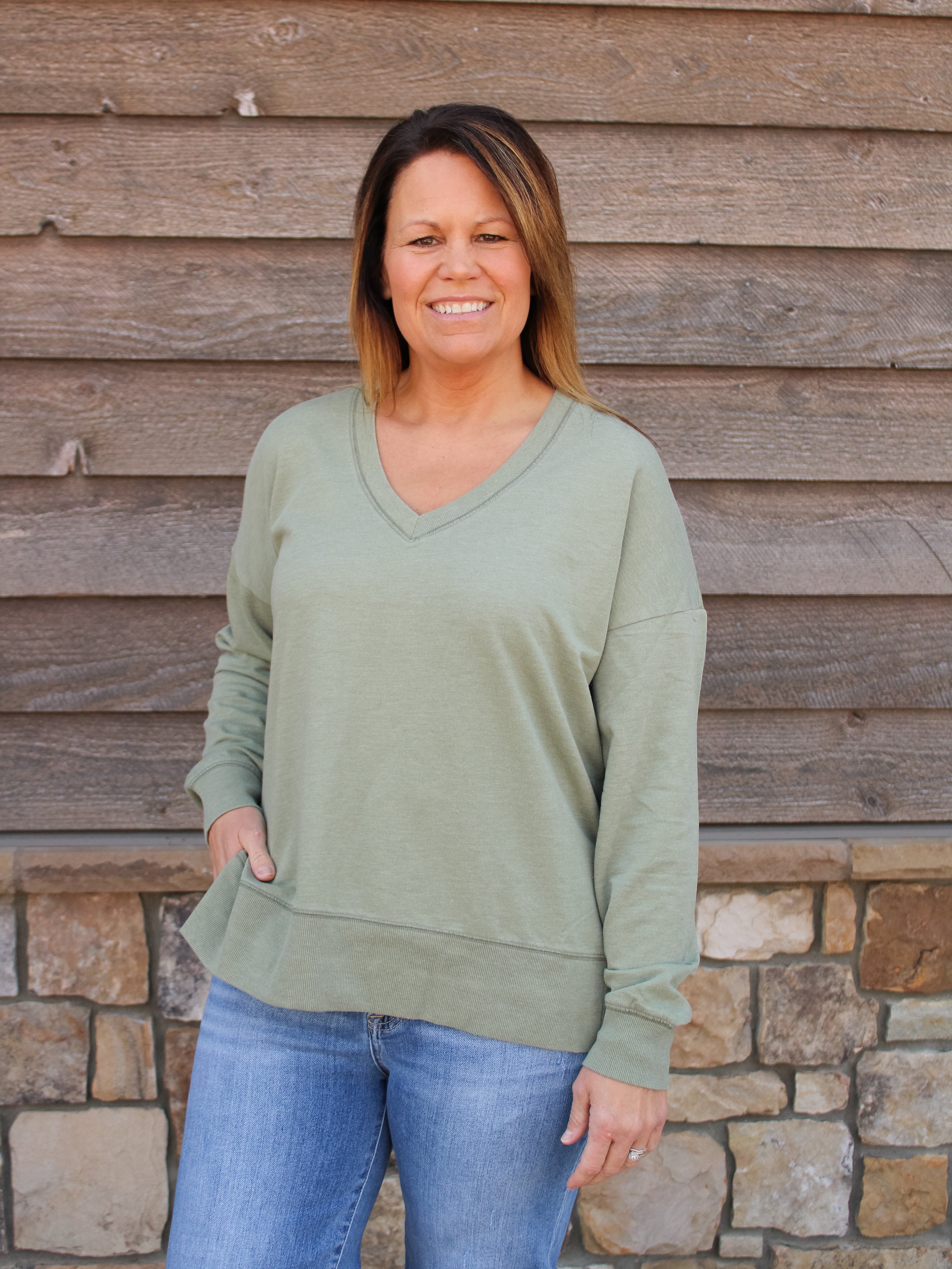 MODERN V-NECK WEEKENDER SWEATSHIRT