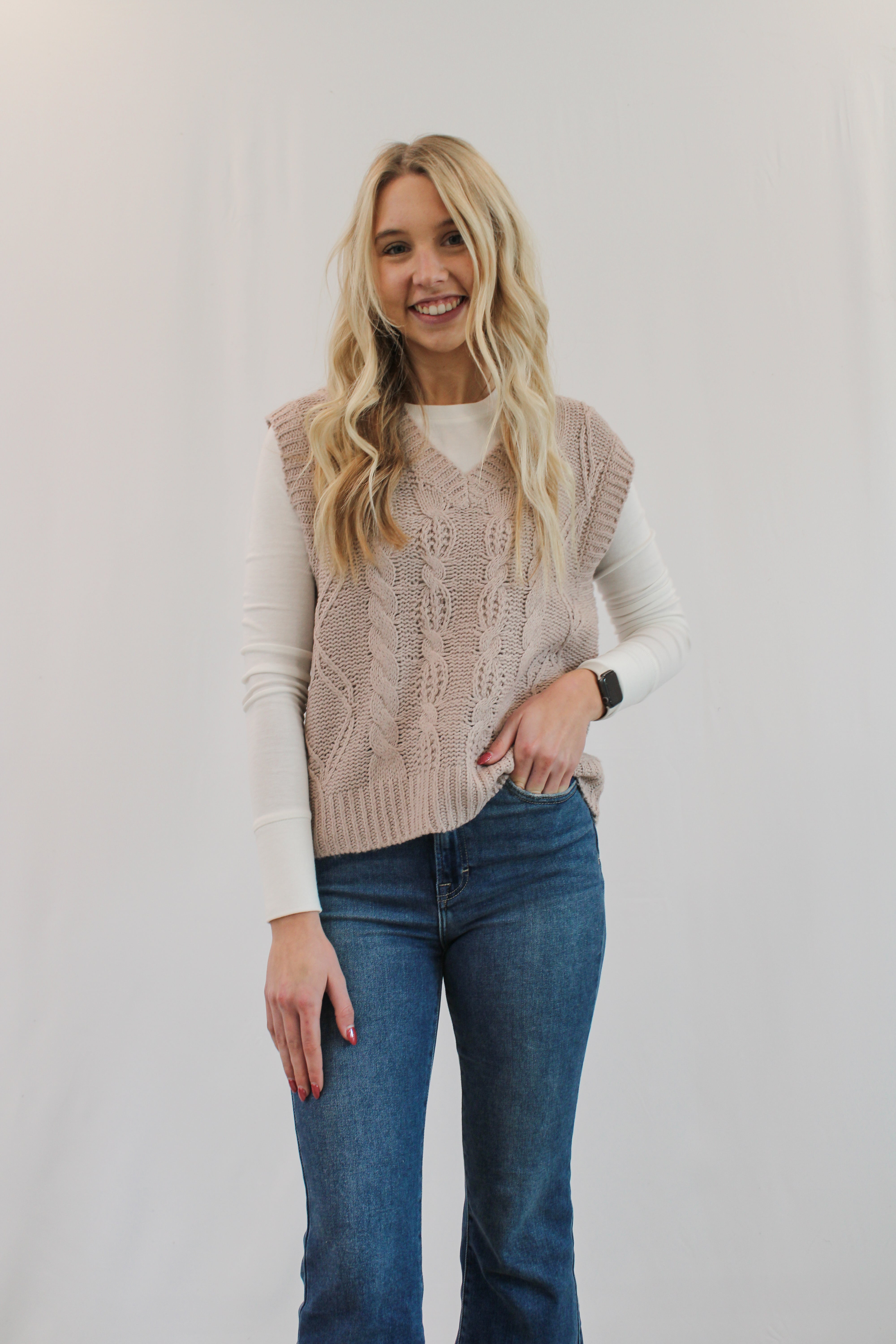 JEAN CHUNKY CABLE KNIT V-NECK VEST
