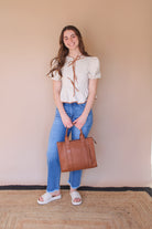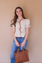 Effortlessly trendy, this top features puff short sleeves and contrast ribbon detailing. Perfect for both casual and formal outfits, it adds a cute and stylish touch to any look. Pair with jeans or dress it up for a versatile wardrobe staple.