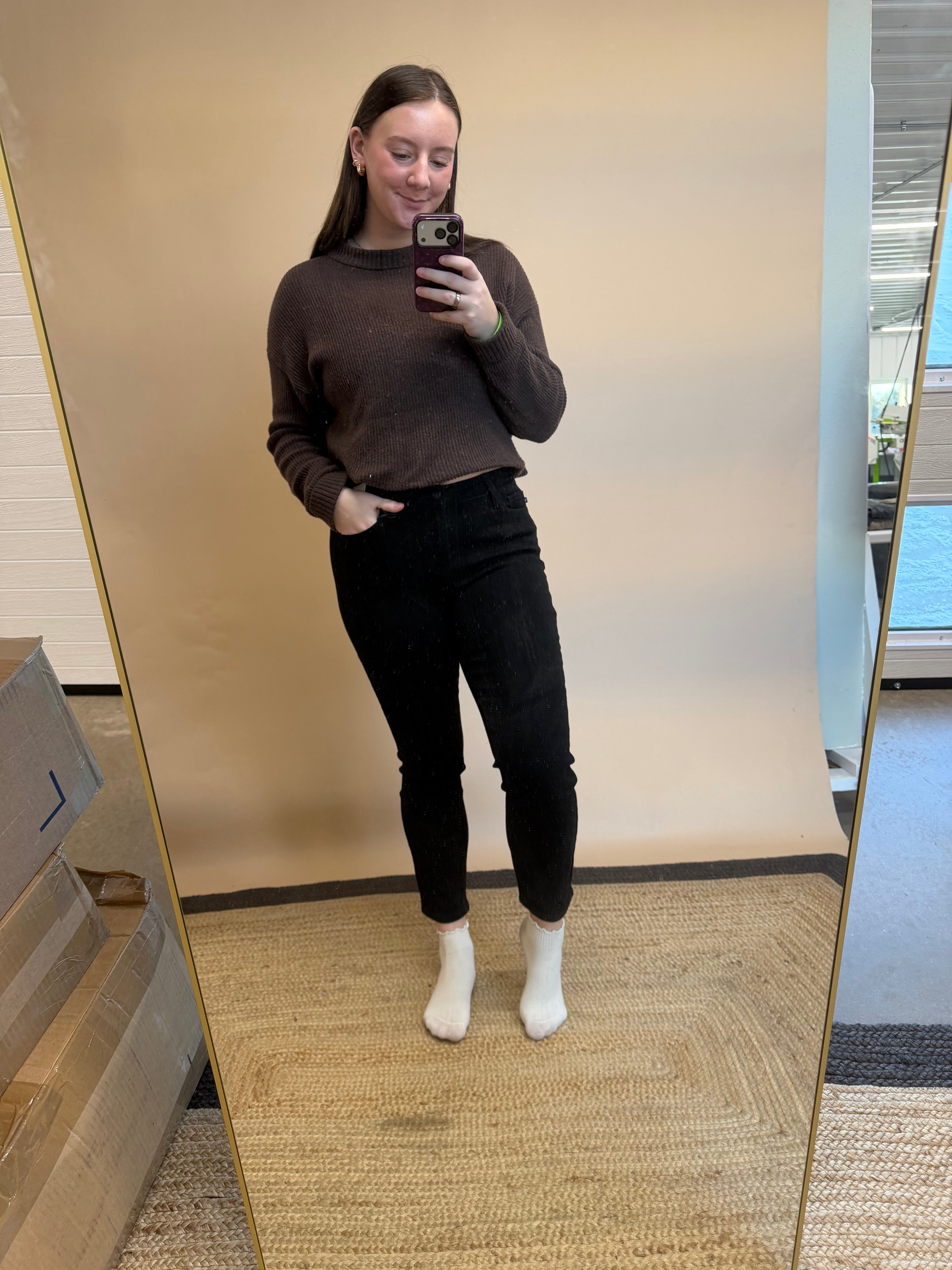Rock a timeless look with the CRYSTA Mid Rise Slim Fit Black Jeans. These sleek black denims sit perfectly at the mid-rise, hugging your curves with a flattering slim fit that works for any occasion. Clean lines and zero distressing mean you're getting pure, polished style—dress them up with heels or keep it casual with sneakers. A wardrobe essential that's anything but boring.