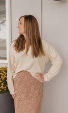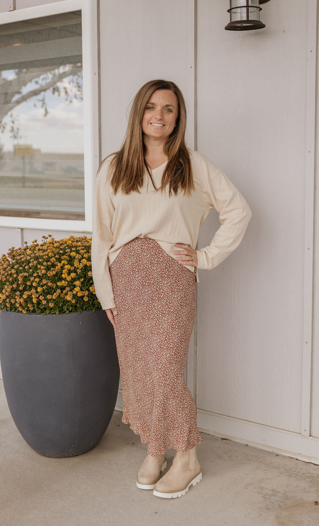 KAIRI WHITE SWAN RIBBED VNECK TOP