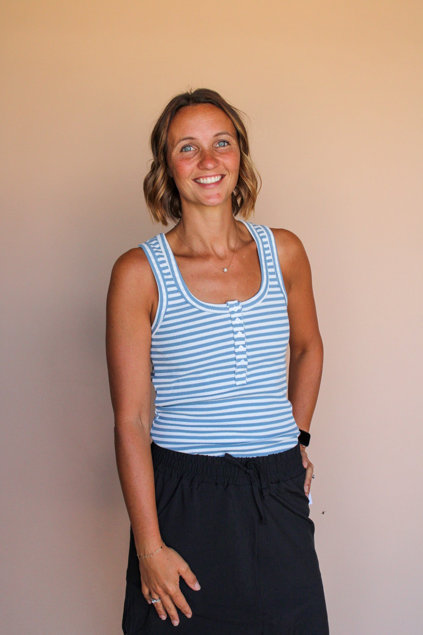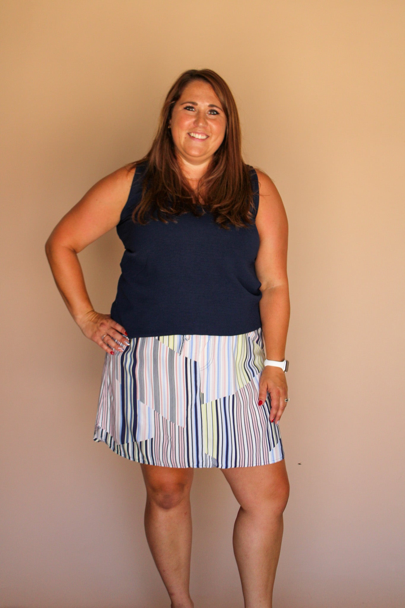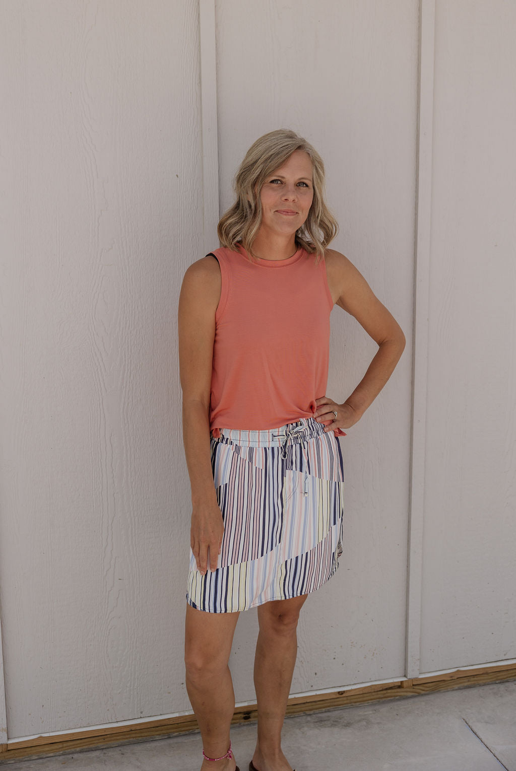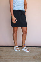 Stay active and stylish in our MISSY DOLPHIN SKORT! This playful piece features a comfortable drawstring waistband and built-in knit shorts for maximum coverage while you move. The rounded side hem adds a flirty touch to your casual wardrobe. Perfect for errands, brunch, or beach days - just pull on and go!
