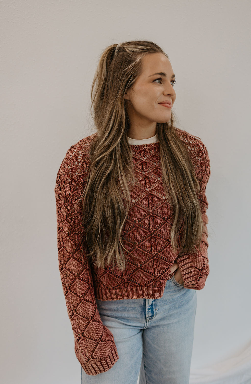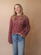 Stay comfortable with this sweater, featuring a relaxed fit, rounded neckline, and long sleeves. Its ribbed bottom band and cuffs add an extra touch of comfort, while the cropped length keeps you on trend. True to size for the perfect fit.