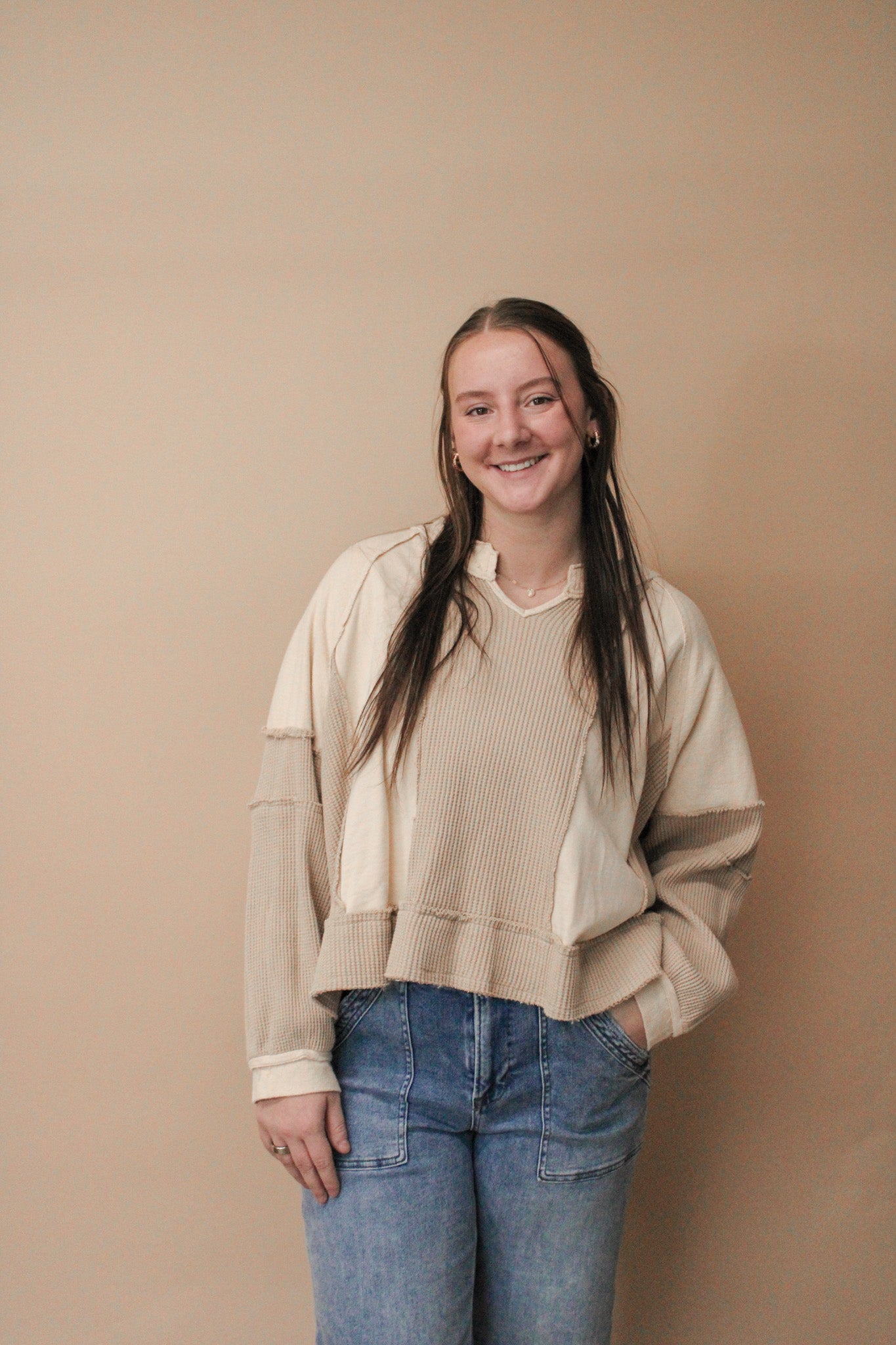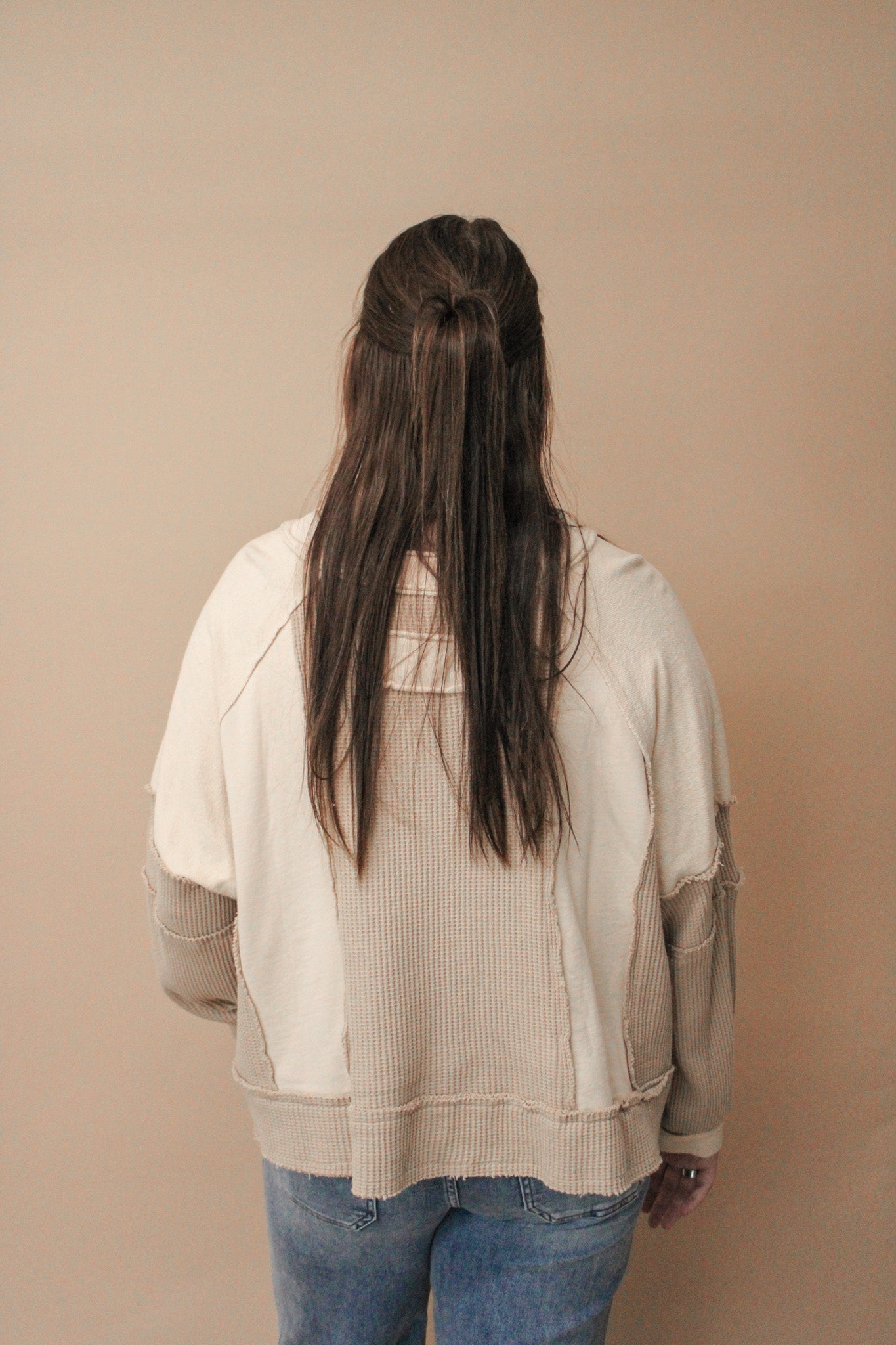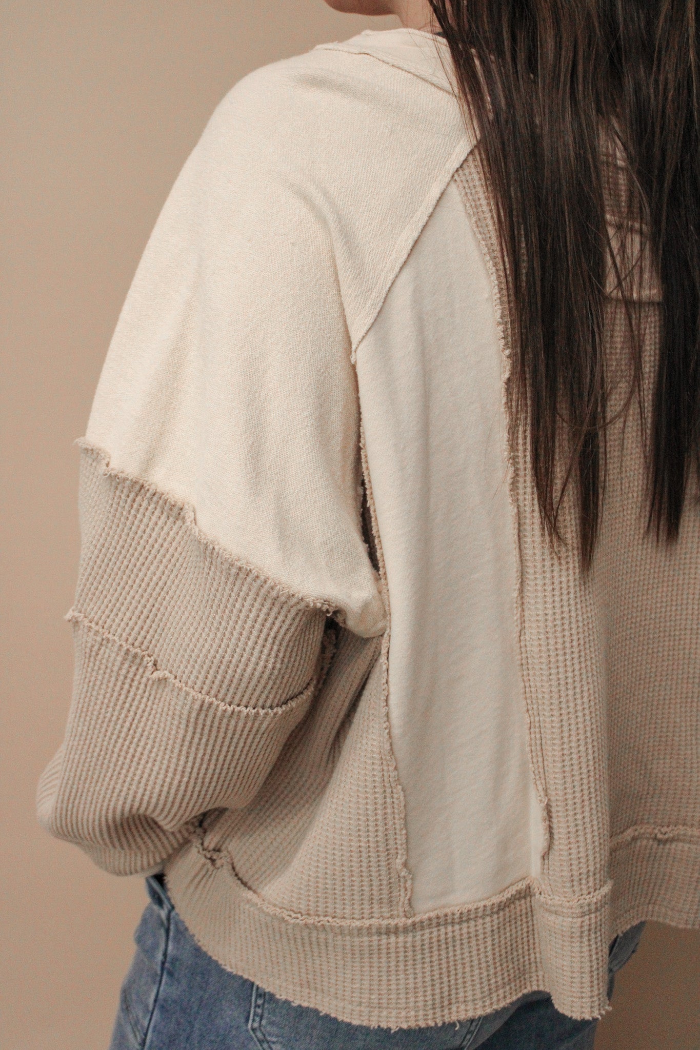 Stay cozy and stylish with our Saffron knit top. With a notched neck and oversized fit, this top is both comfortable and trendy. Made from french terry and thermal materials, it's perfect for any weather. The frayed edges add a unique touch to this must-have piece.