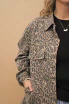 Unleash your wild side with the Wild Streak Cheetah Oversized Jacket! This playful denim jacket features a washed finish and bold cheetah accents, adding instant edge to your look. Its roomy oversized fit offers comfort and style, with a 46" bust and 28" body length on size small—perfect for layering. Make every outfit roar with personality!